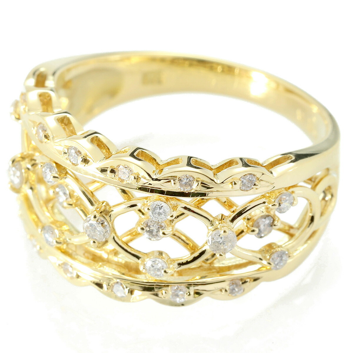 デイリー 普段使い キラキラ 華やか エレガント 存在感 ボリューム 幾何学 クラシカル モダン 上品 4月 誕生石 ダイア ラウンド 18金 20代 30代 40代 50代 60代 70代 USED ユーズド 中古 リユース リング・指輪 LESH4307