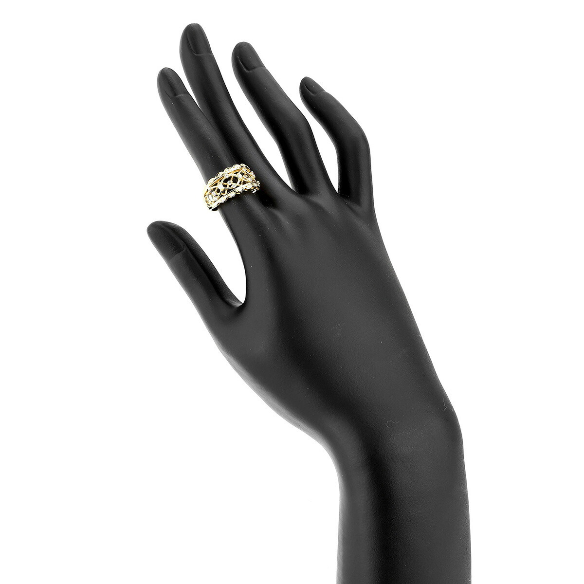 指元に特別な輝きを添える、ボリューム感たっぷりのダイヤモンドオープンワークリング。繊細に編み込まれた幾何学模様がクラシカルな美しさを演出し、流れるようなデザインが指をしなやかに魅せます。存在感がありながらも軽やかな着け心地で、日常から特別なシーンまで活躍する一品です。