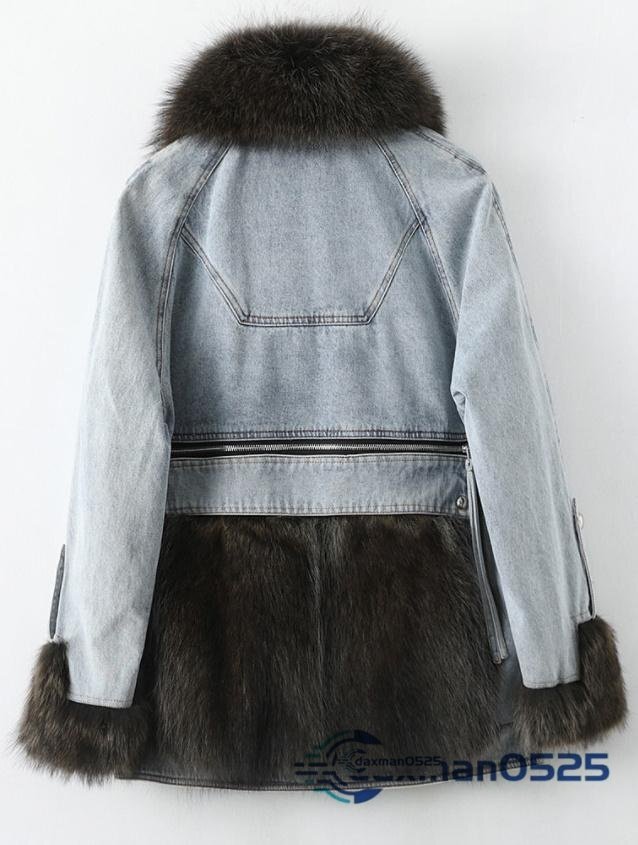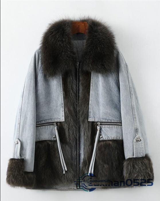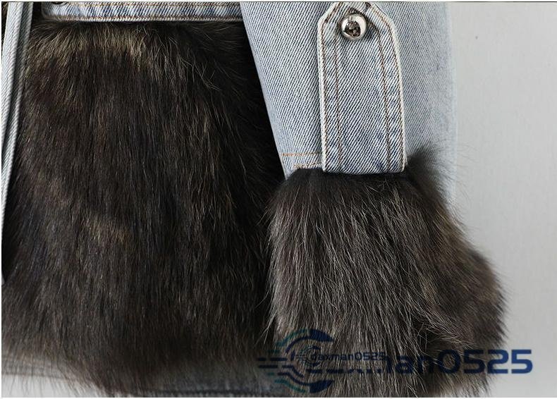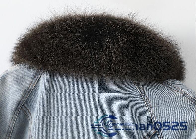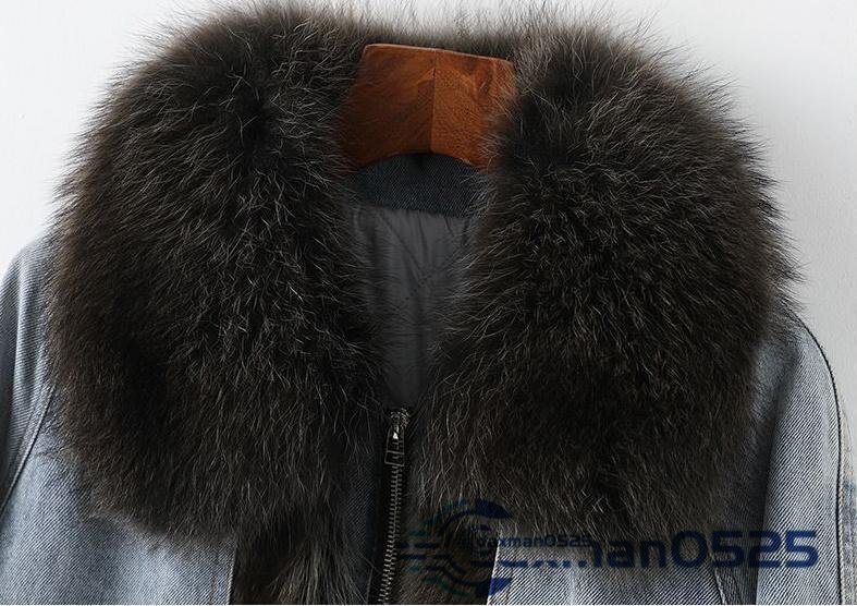 最高級ラクーンファー付き★デニム生地の中棉コート毛皮ファー