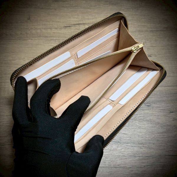 革は肉厚のあるヌメ革ですが程よい硬さで