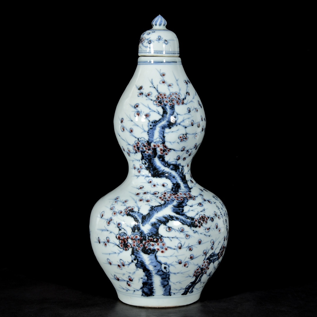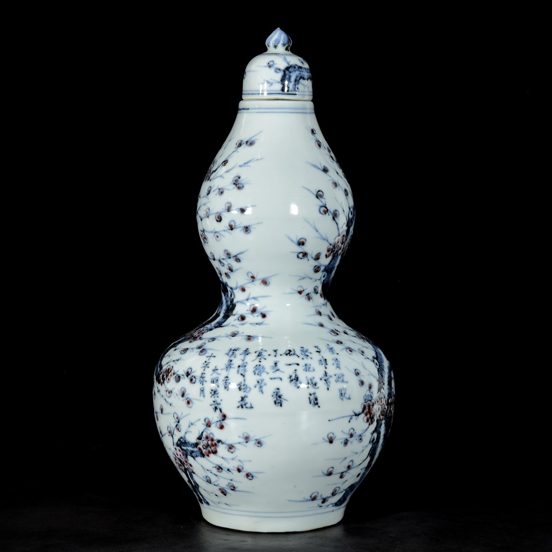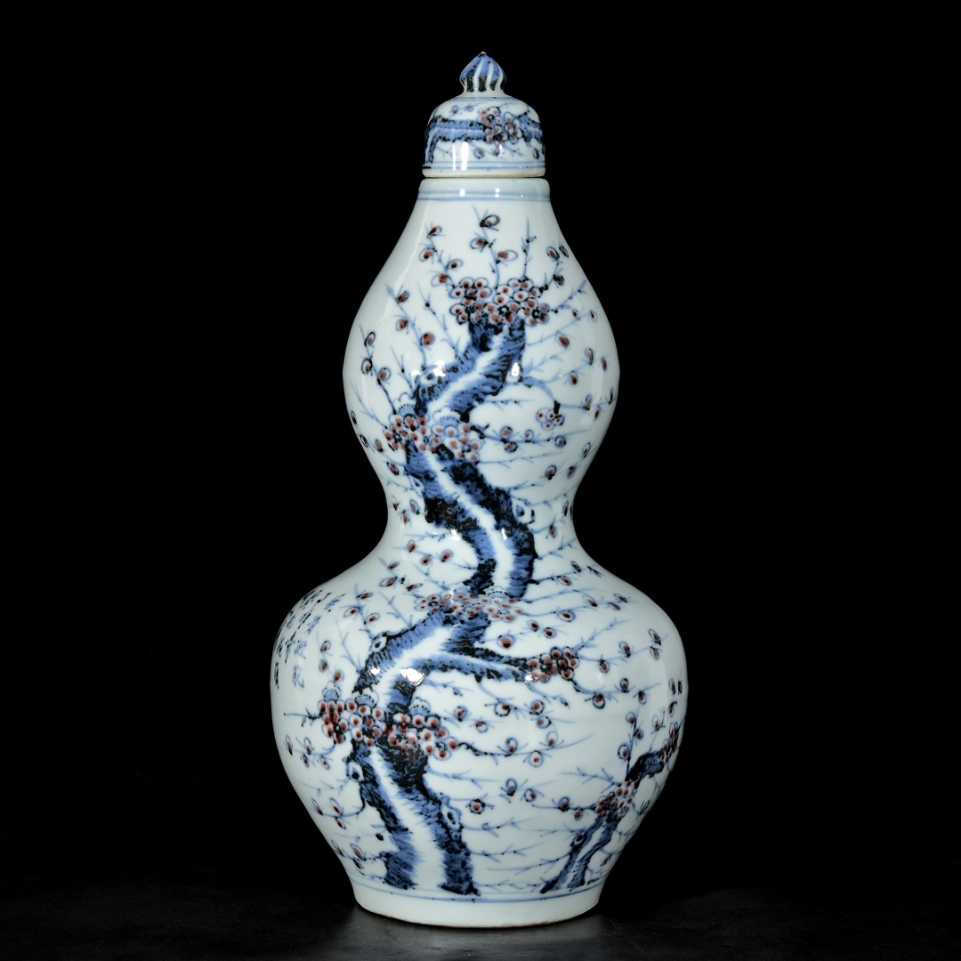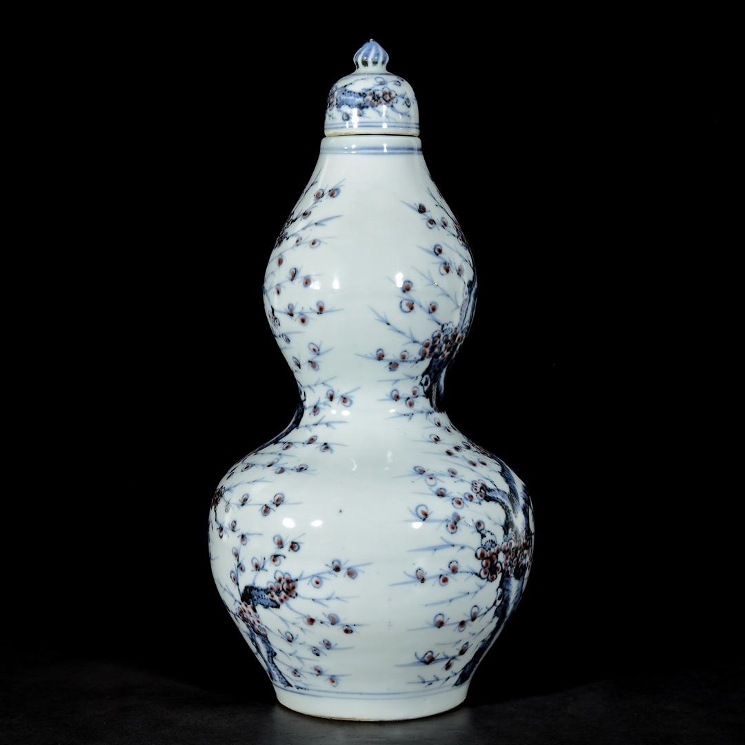 *珍品旧蔵* 明 洪武年製 青花釉 裏紅 梅花紋 葫蘆瓶 陶磁器 極細工 唐物 中国磁器 中国古玩 陶芸 H44