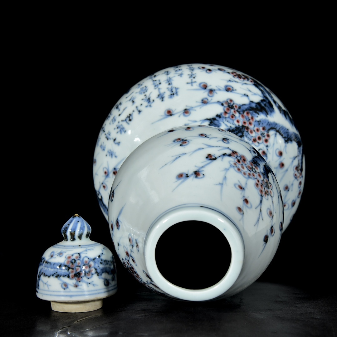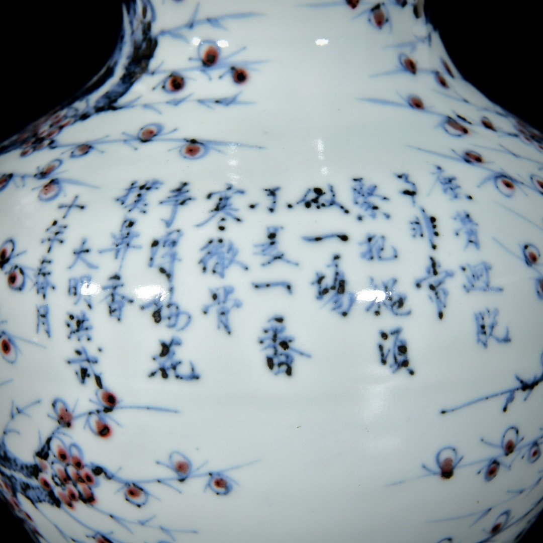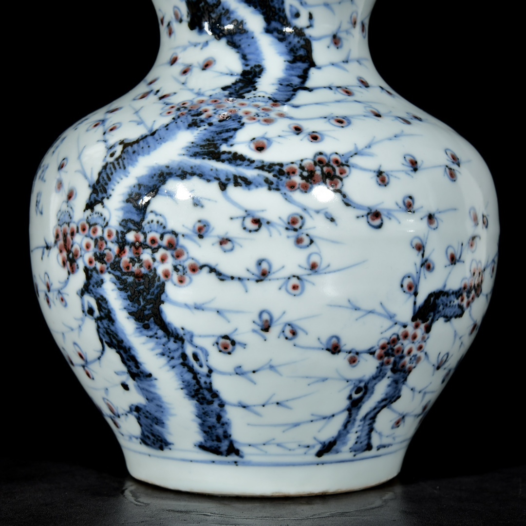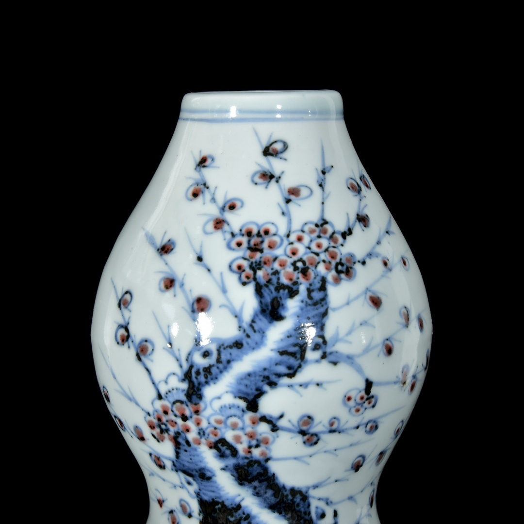 *珍品旧蔵* 明 洪武年製 青花釉 裏紅 梅花紋 葫蘆瓶 陶磁器 極細工 唐物 中国磁器 中国古玩 陶芸 H44