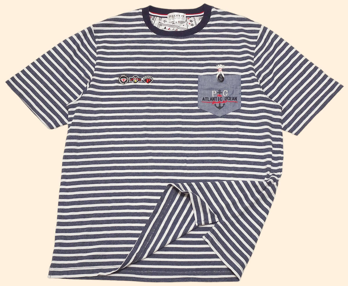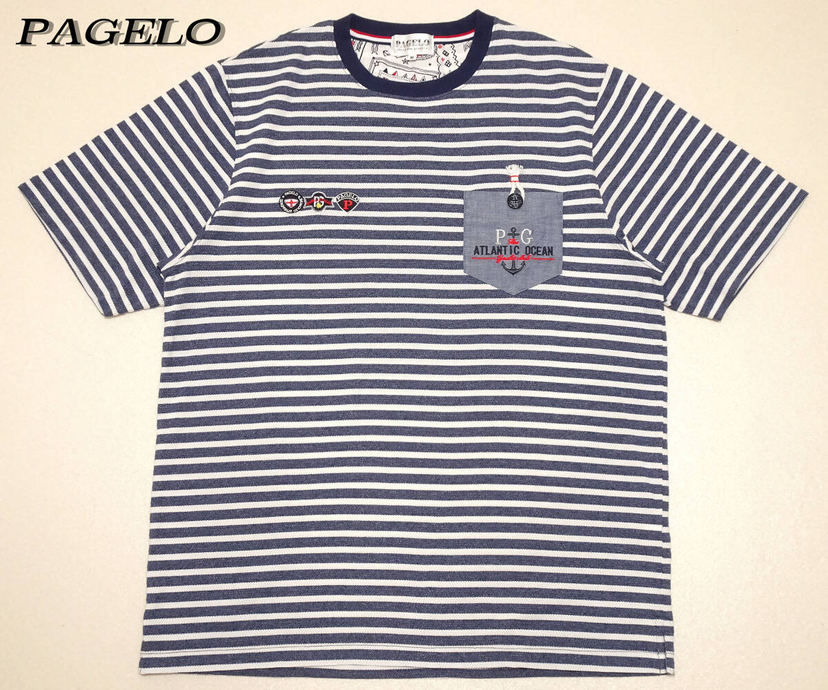 PAGELO(パジェロ)/コットン×ポリ/ストレッチ/吸汗速乾/ボーダー/ポケットTシャツ/M