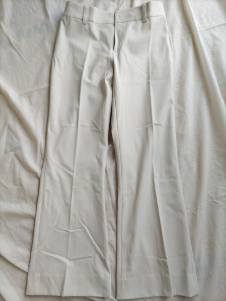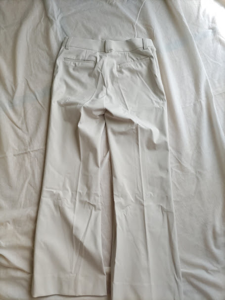 夏素材のオフホワイトのパンツです。長期間、たたんで保管してましたので、しわがあります。
