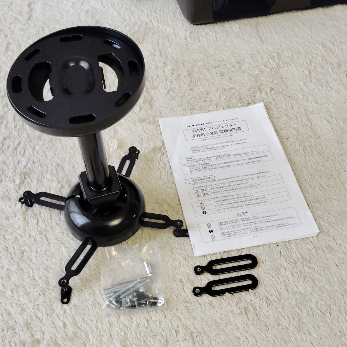 汎用のプロジェクター天井吊り金具です。ほとんどのプロジェクターに対応ができる極めて汎用性の高い天吊り金具で、私の場合は、吊り点が3箇所しかない三菱プロジェクターLVP-HC5000を吊り下げていました。