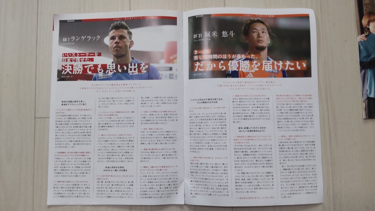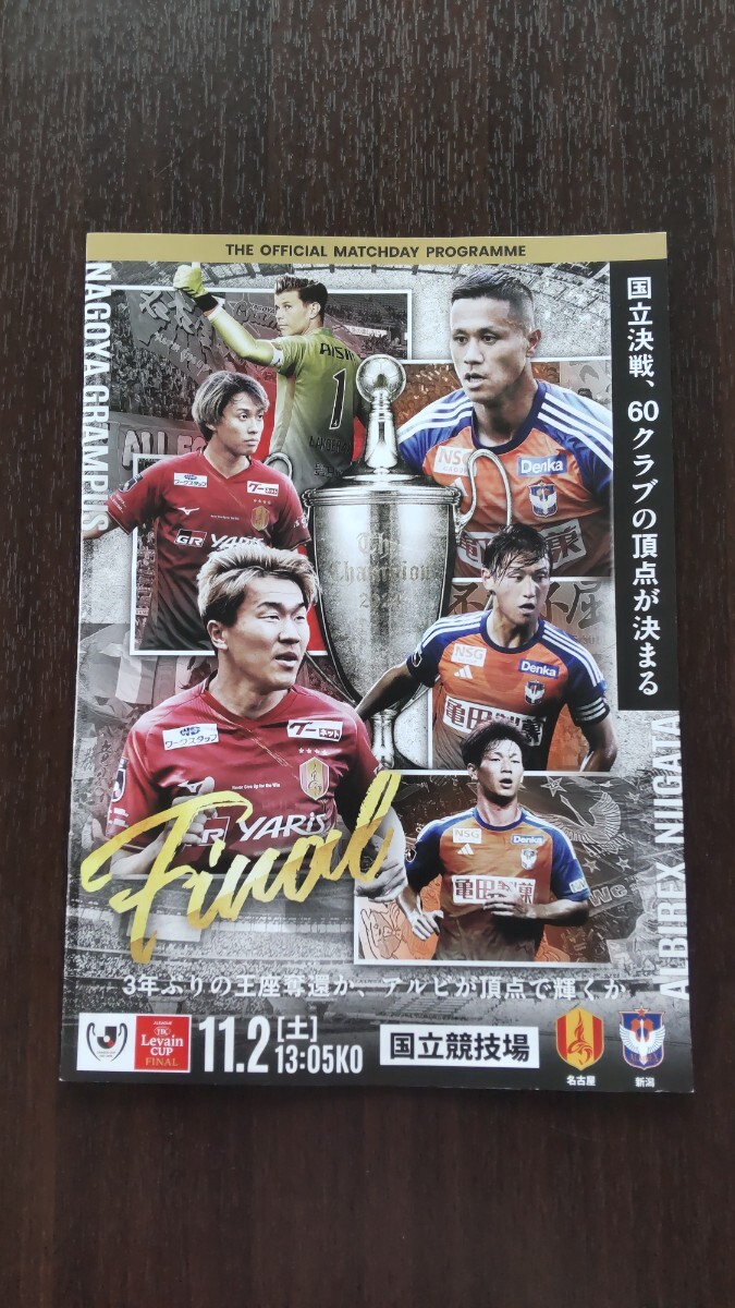 2024/11/2 国立競技場にて雨天の中、行われた伝説に残る激闘のルヴァンカップ決勝、名古屋グランパスvsアルビレックス新潟の入場者限定で配布されたパンフレットです。