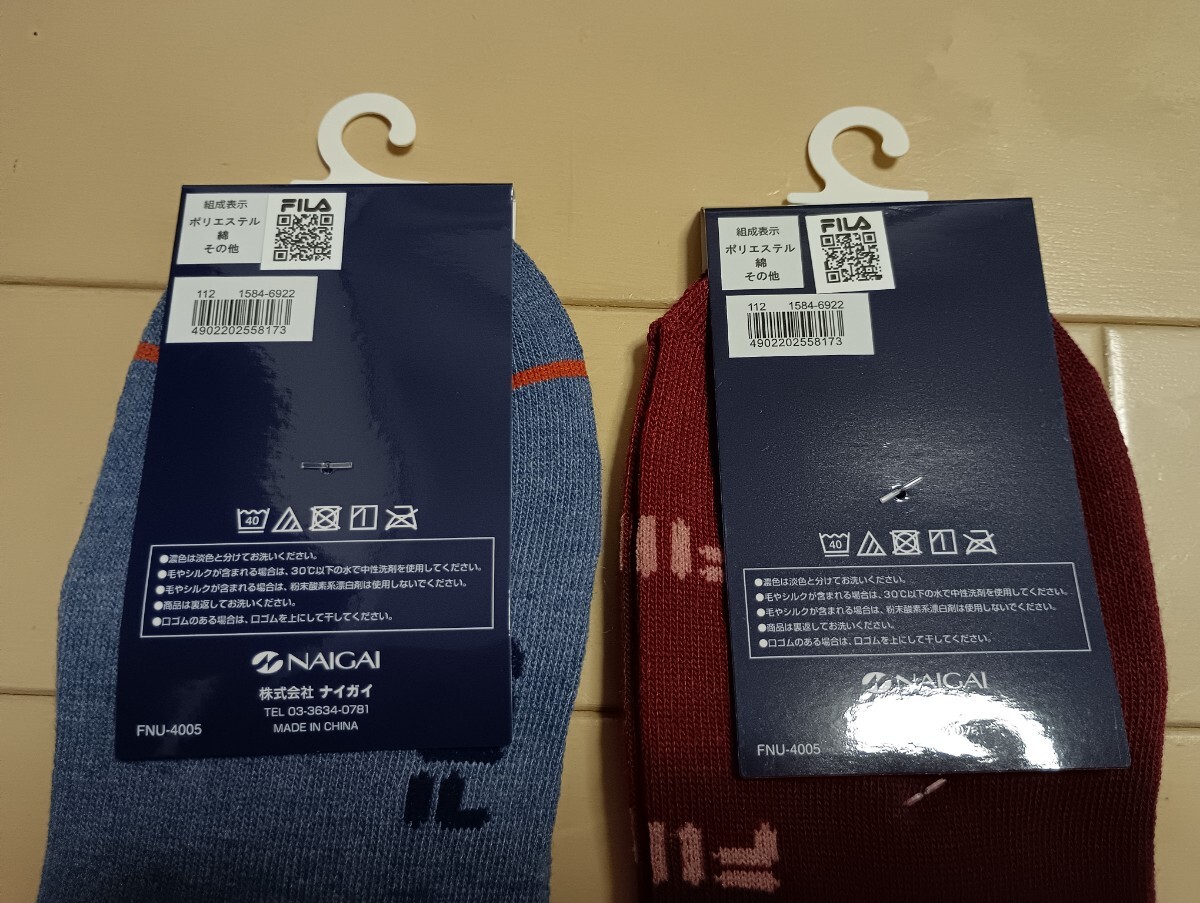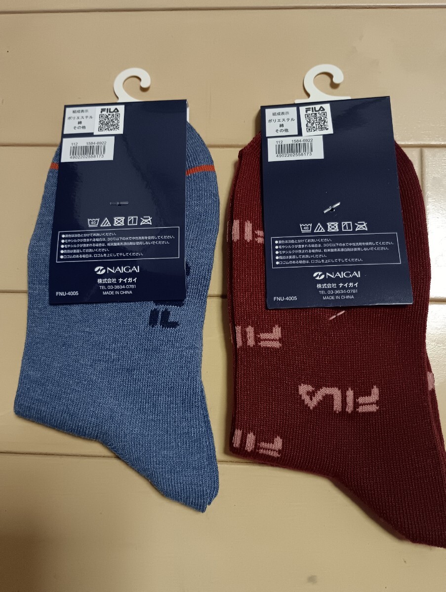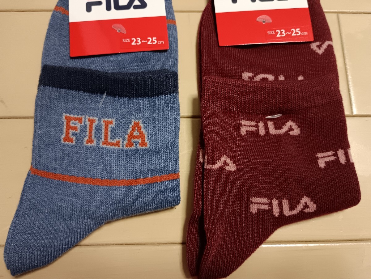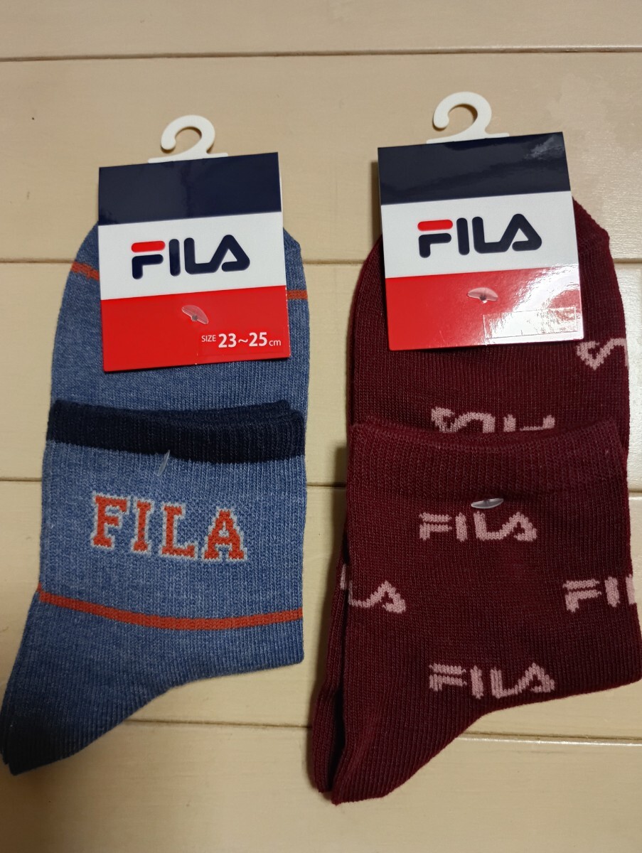新品 FILA ブルー色&ワインレッドのクルーソックス2足セットです。