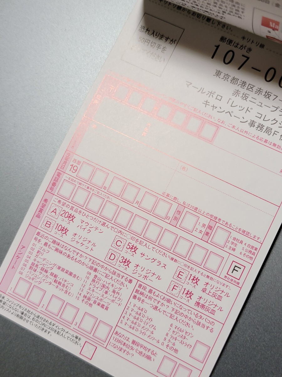 マルボロ ジッポ レッドコレクション Marlboro zippo redcollection 応募用紙