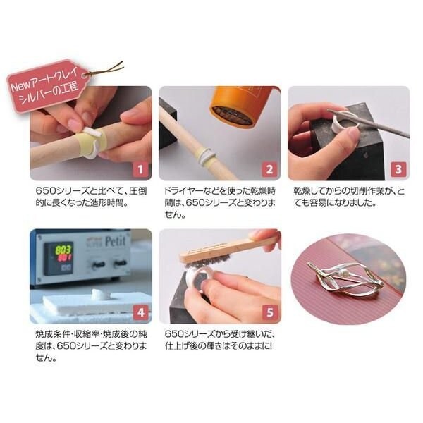 650℃から焼成できる低温焼成タイプの銀粘土です。