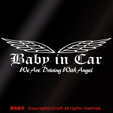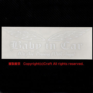 Baby in Car/We Are Driving With Angel ステッカー(OEb/白23cm)ベビーインカー、天使の羽