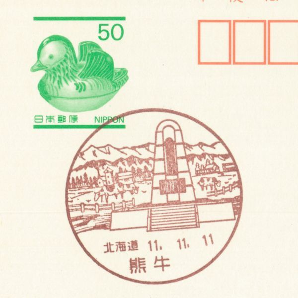 風景印☆初日☆北海道・熊牛・H11.11.11
