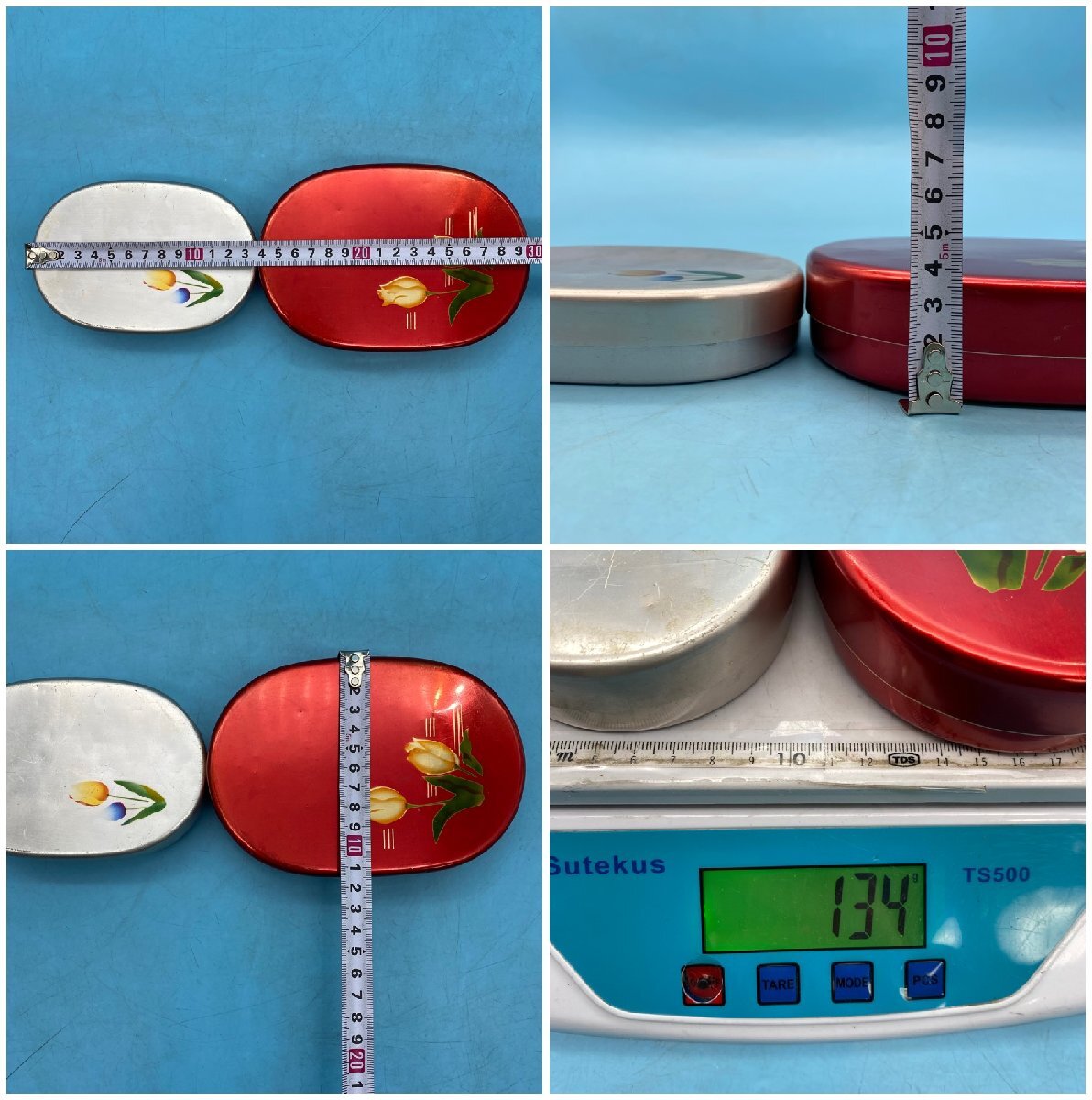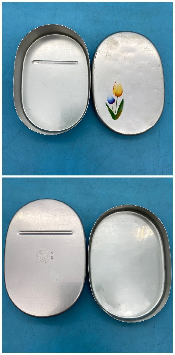 【17156P156】お弁当箱 2個セット 現状品 大一アルミニウム ホシマル印 チューリップ 昭和レトロ 赤 レッド 銀 シルバー 小判型 ダイイチ