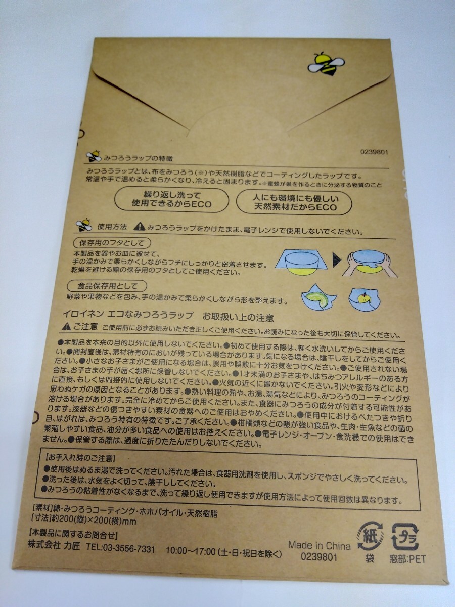 繰り返し洗って使用できる エコなみつろうラップ フラワー 未使用未開封品です。