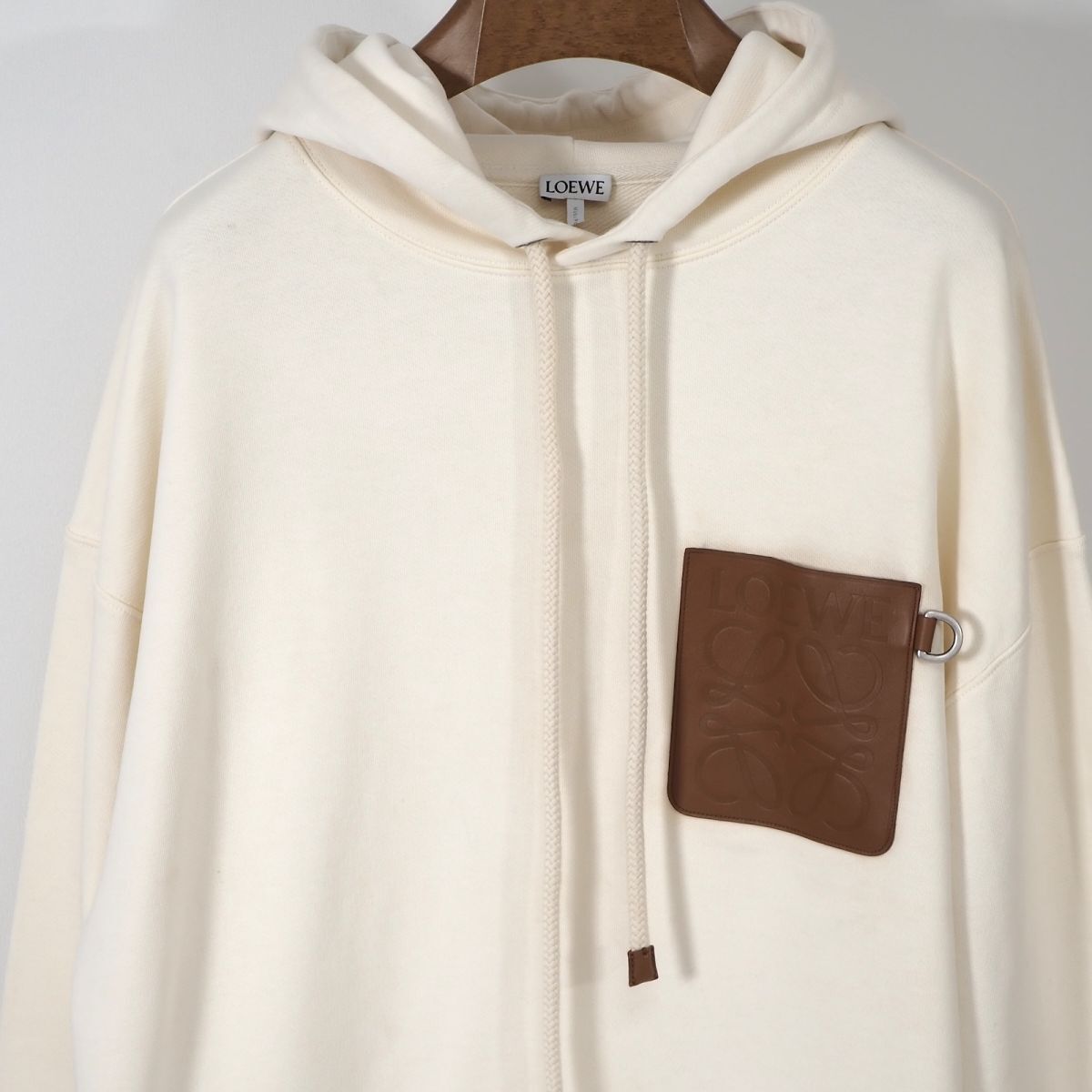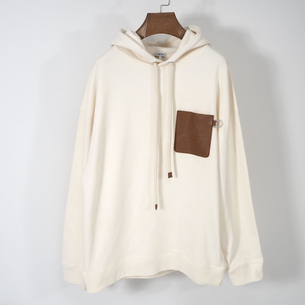 商品名 | ロエベ LOEWE スペイン製 アナグラム レザーパッチ フーディ パーカー アイボリー S メンズ 正規品 5-DD026 |