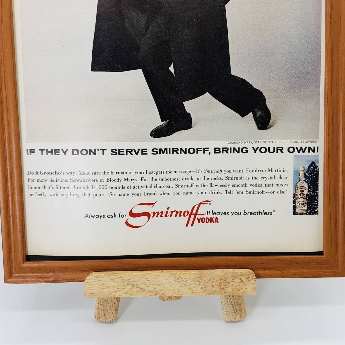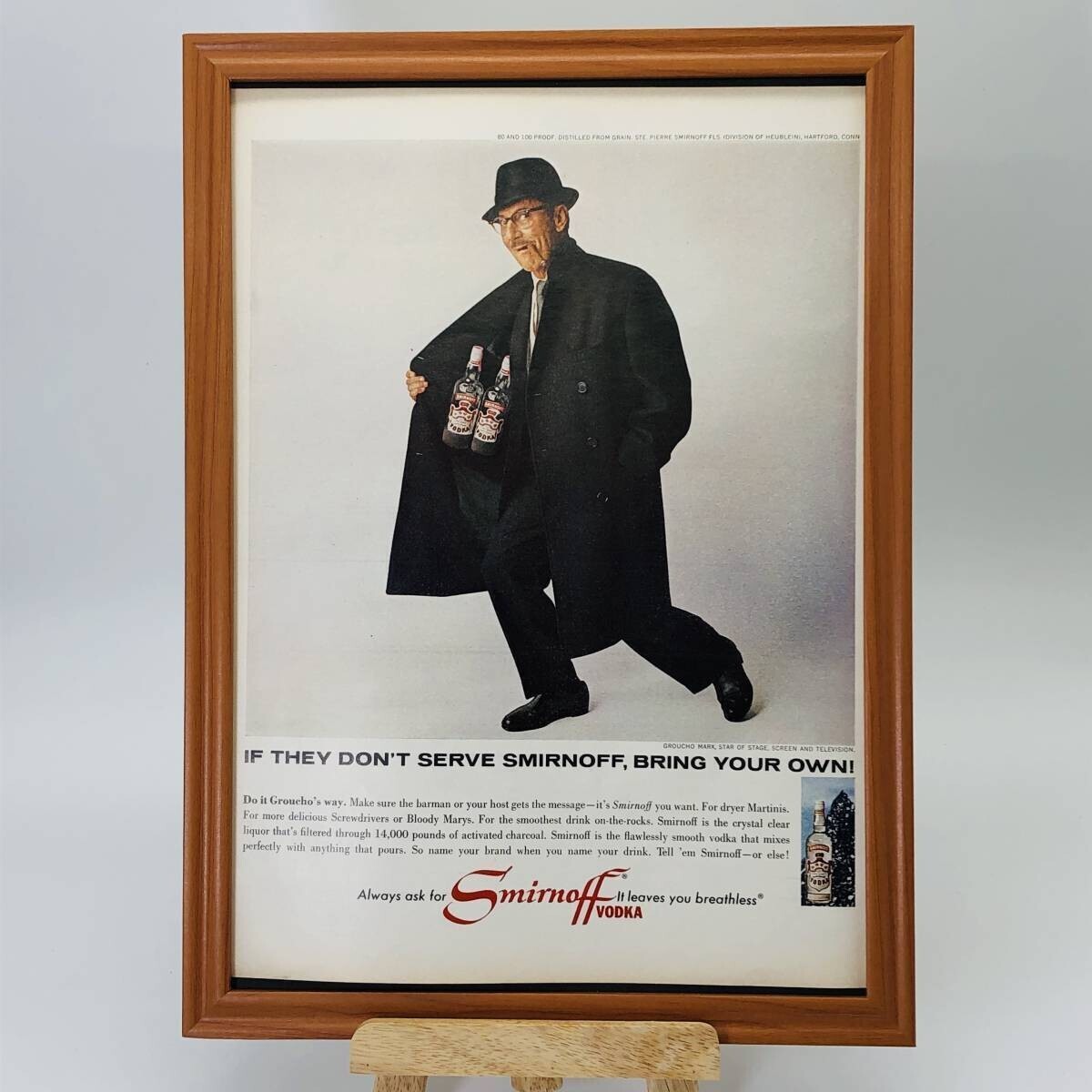 1960年代当時のアメリカの雑誌 LIFEに掲載されていた『 スミノフ ウォッカ (smirnoff vodka) 』の広告を額装いたしました。