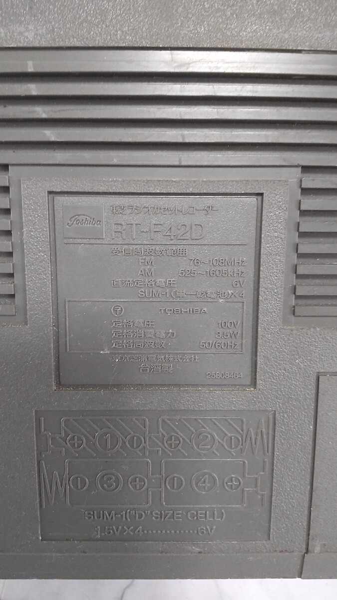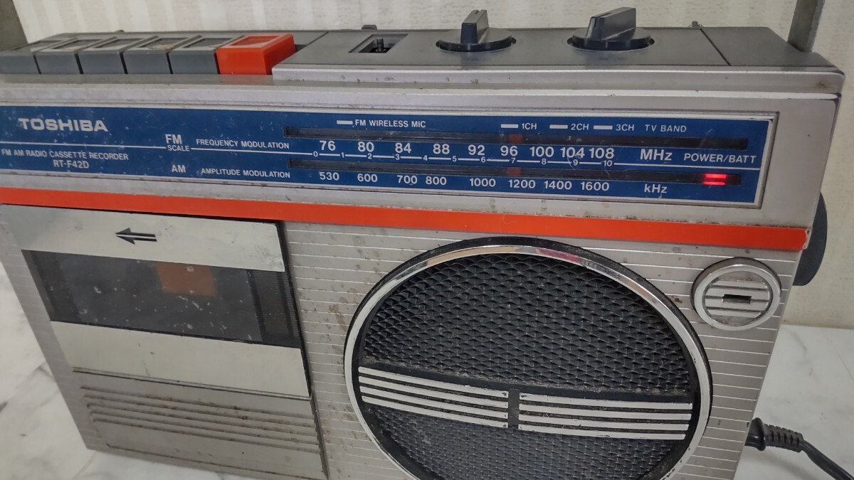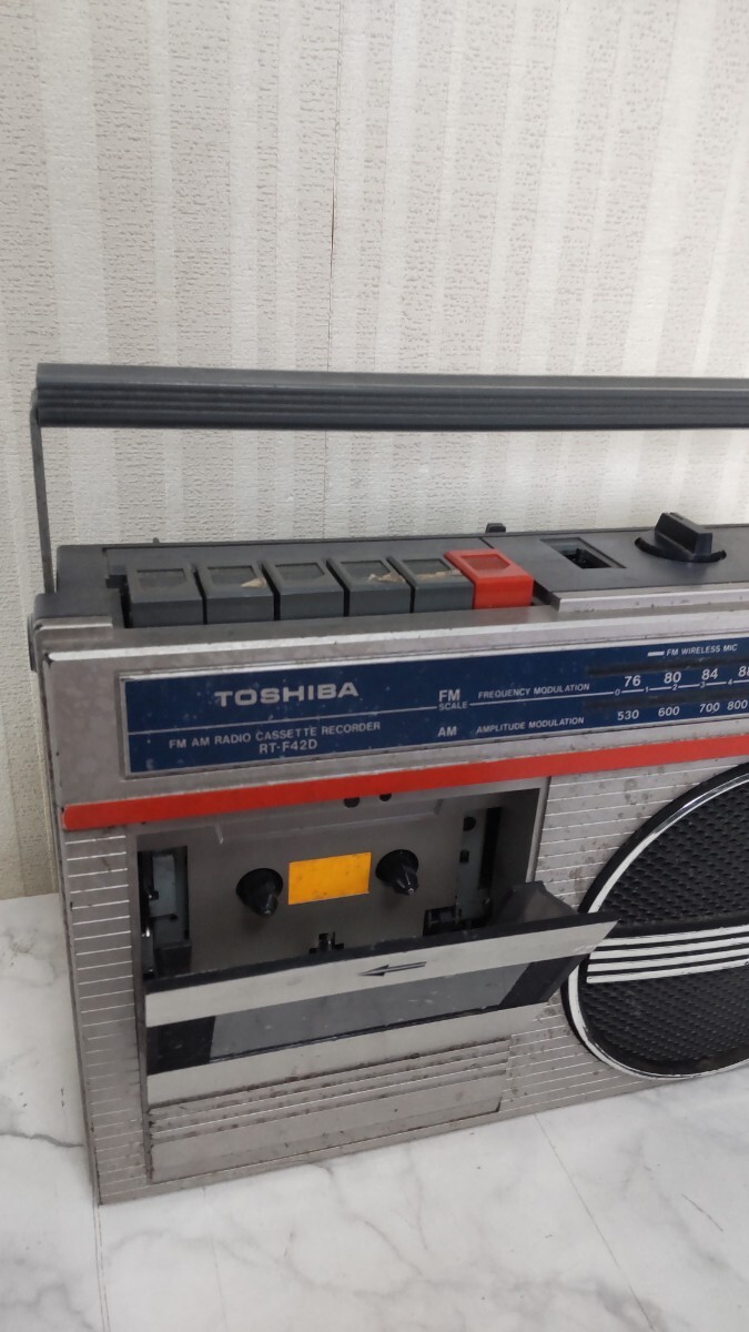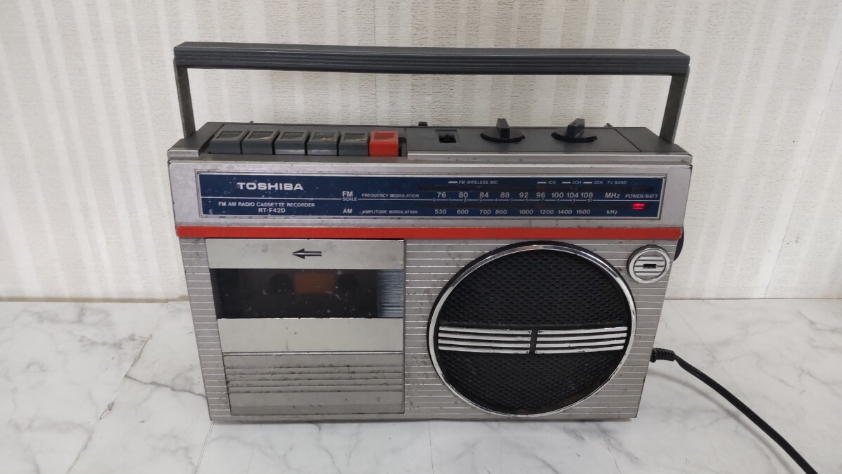 S2530 TOSHIBA ラジカセ RT-F42D/AM/FMラジオ/カセットレコーダー/昭和レトロ/東芝 動作確認済 詳細本文参照 現状品 JUNK