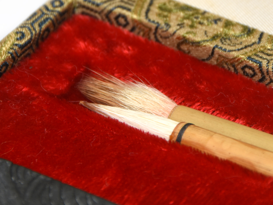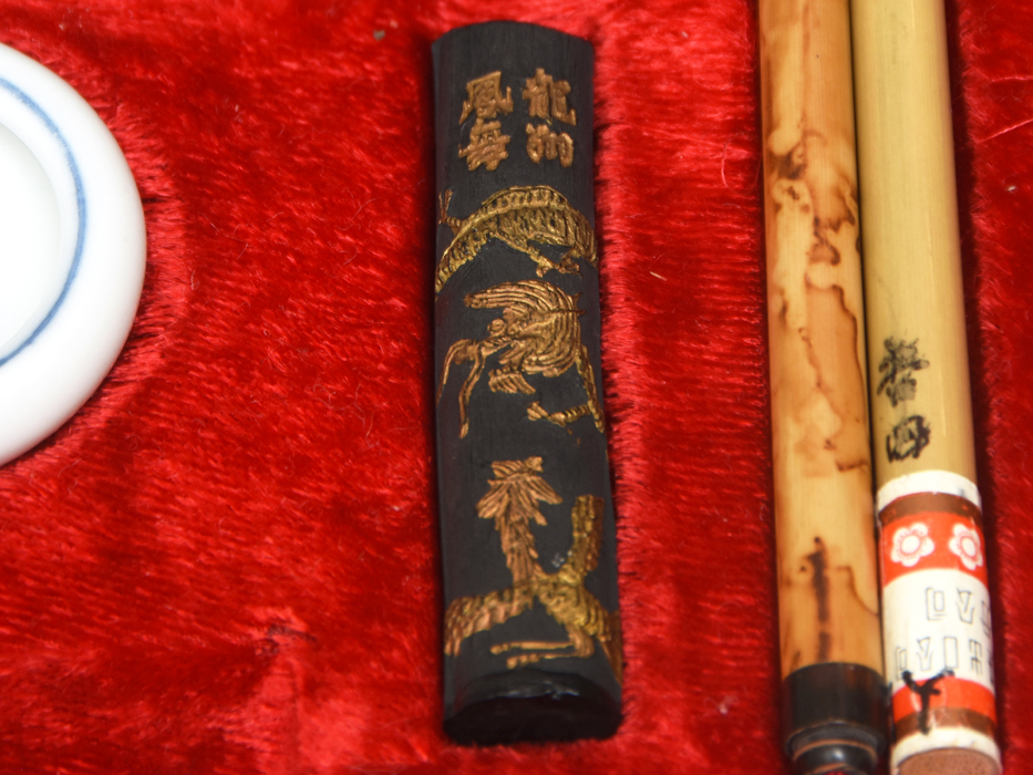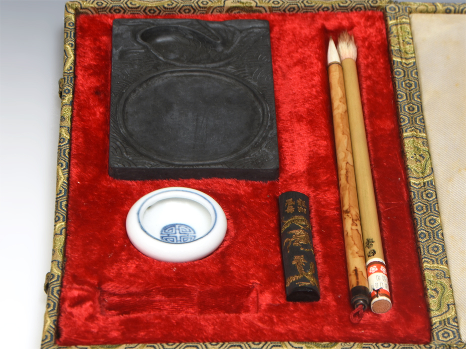 中国美術 文房之寶 硯 筆 固形墨 水皿 専用箱 書道具 古玩 唐物 文房具 文房四宝 筆 硯 墨 胡開文 |