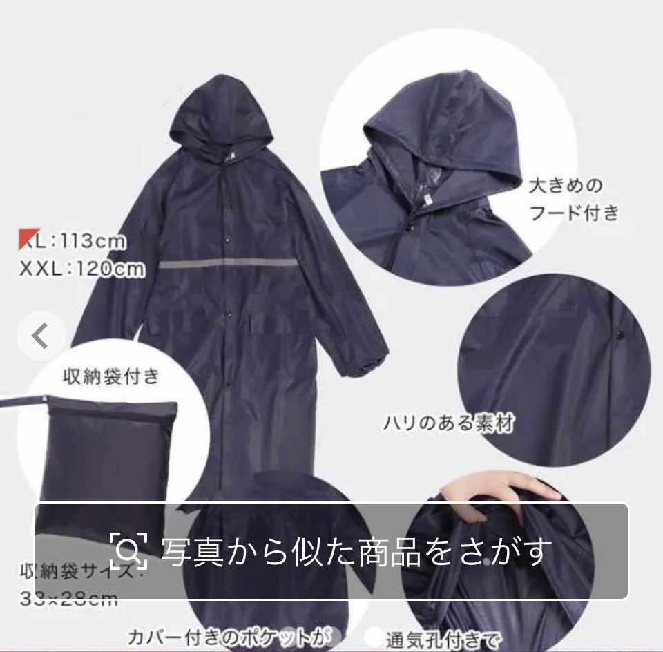 長さ115cmと通常のレインコートより長めに出来ていますので