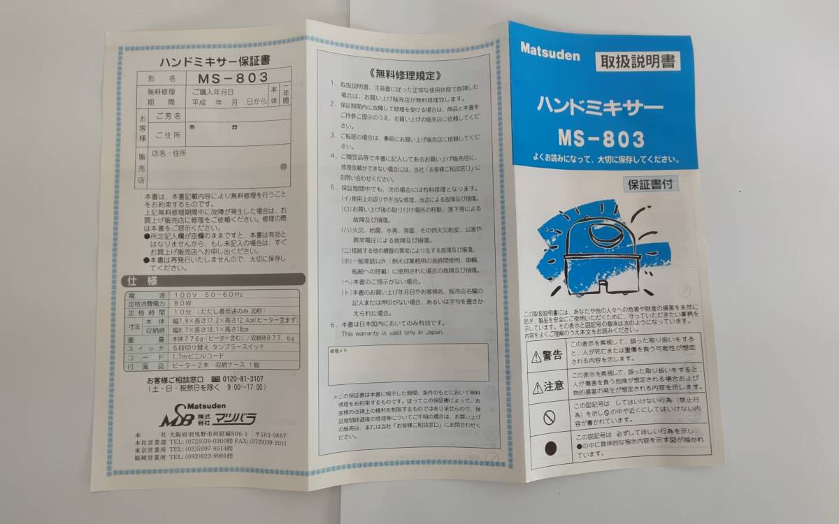 製品名:Matsuden ハンドミキサー MS803 ホワイト
