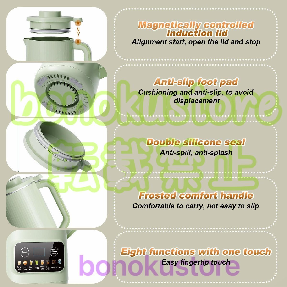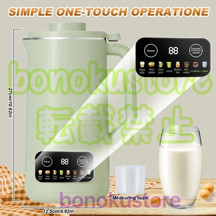 特別なLEDスクリーン設計:シンプルでスマートなLEDスクリーンにより、タイミングと温度制御が従来のミルクメーカーよりも正確になります。 LEDスクリーンを通じて機能時間を知ることができます。ナッツミルクメーカーは過熱防止&自動停止機能付き。豆乳メーカーはプログラム終了後にビープ音が鳴るので、ずっと見守る必要もありません。