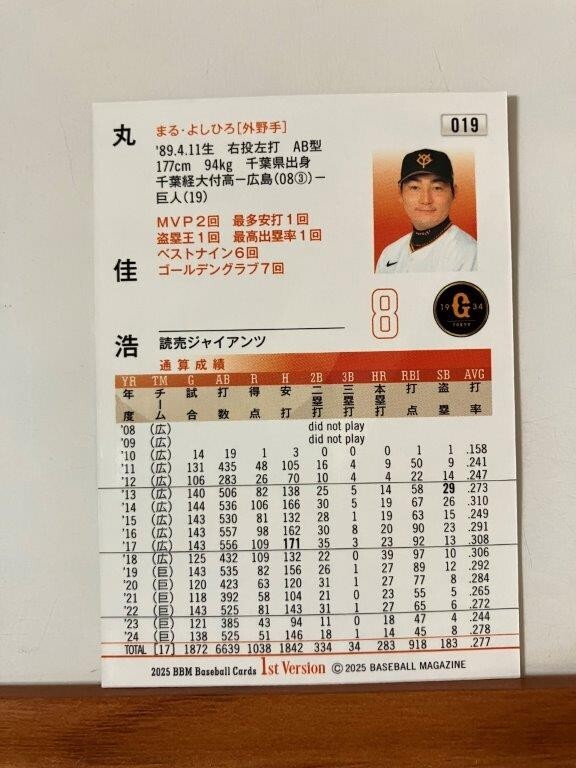 【2025 BBM 1st】019丸佳浩(読売ジャイアンツ)レギュラーカード