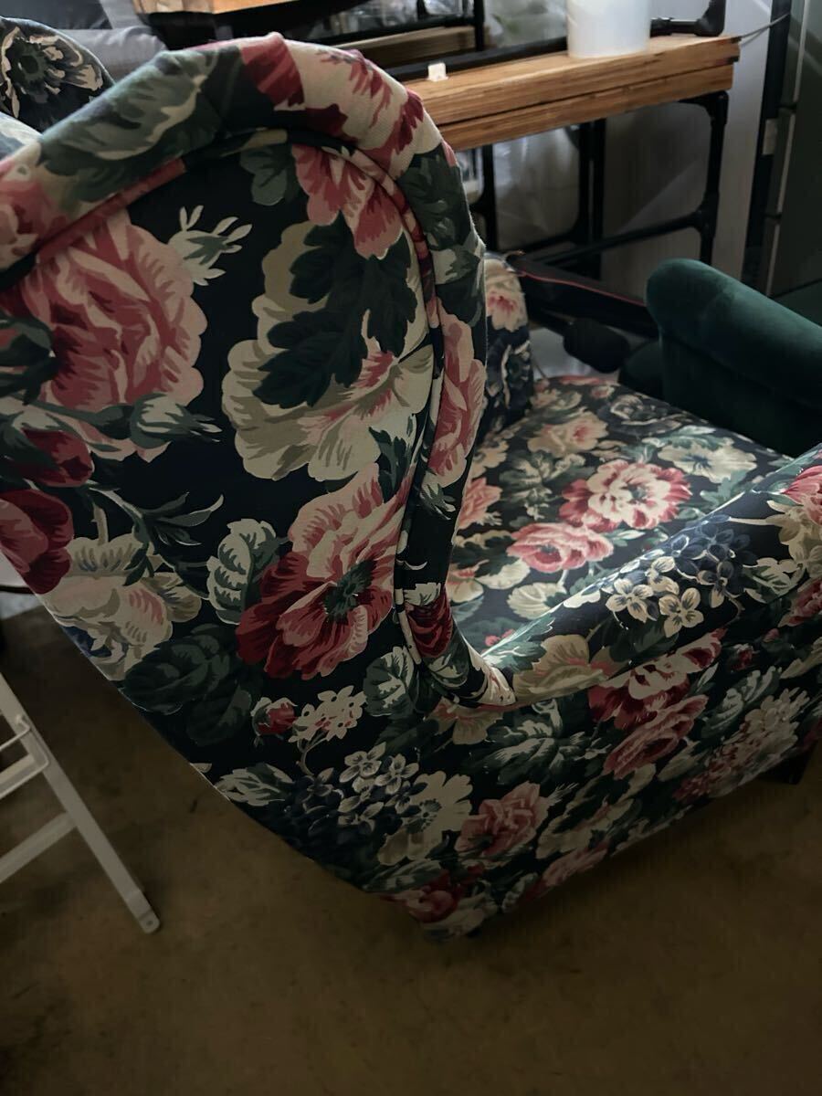 花柄ウィングバックソファ+オットマンセット