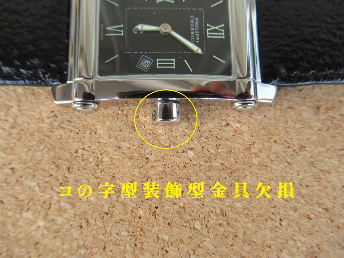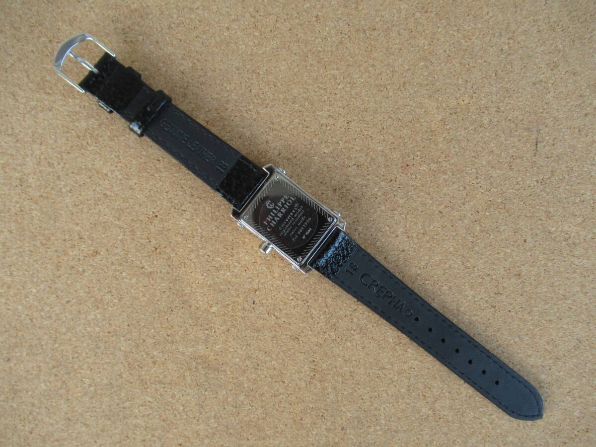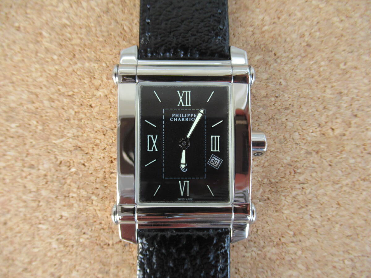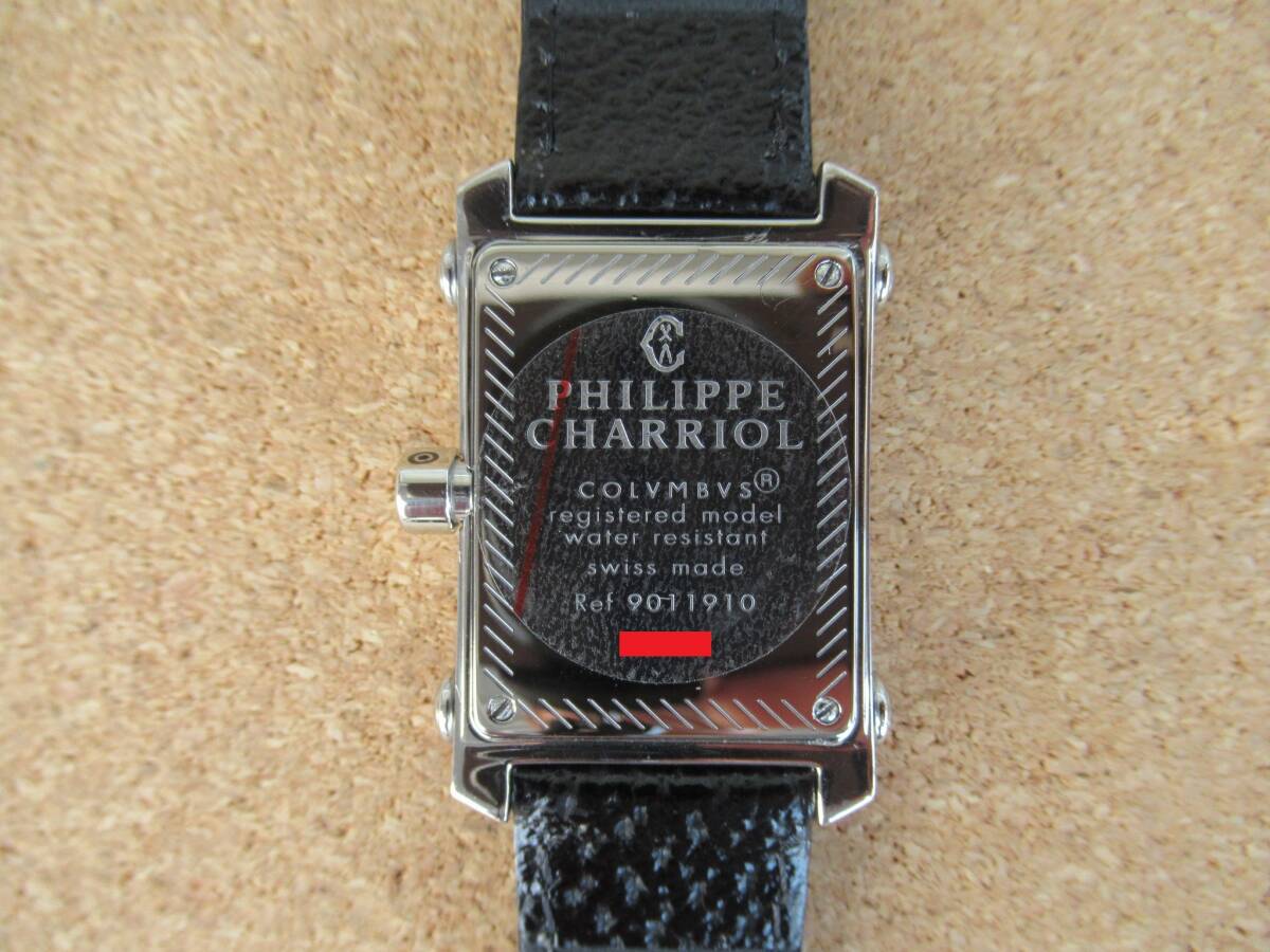 フィリップシャリオールのコロンブス《Ref 9011910》メンズモデルです!! このモデルはレディースモデルが多いですが、珍しいメンズモデルで、ブレスも殆どがメタルブレスですがシックな雰囲気のレザーストラップ仕様です。 ケース幅約28ミリの小振りなサイズ感で女性にもお勧めです。 社外の新品革ベルトを取り付けてリフレッシュ済みです!!