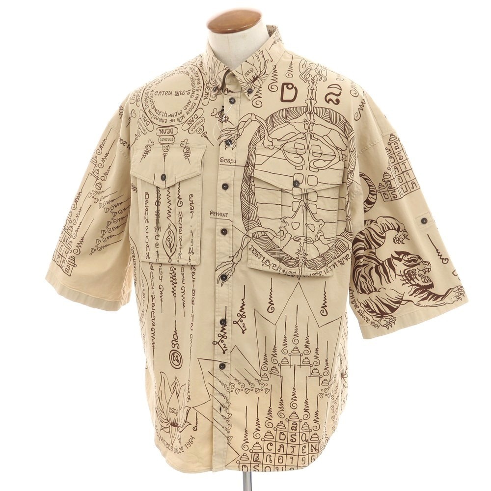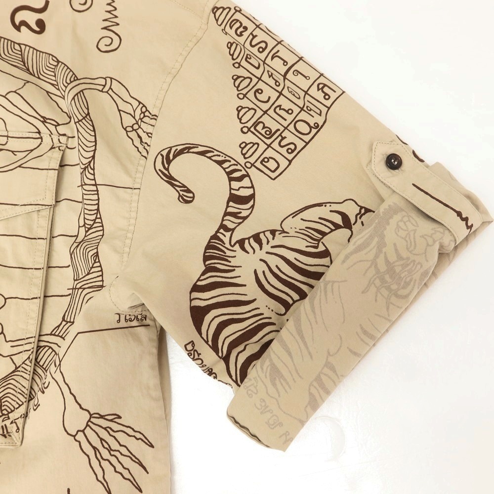 程よい厚みのややハリのあるドライタッチなストレッチツイルコットン生地を使用した、ボタンダウン半袖シャツです。程よくルーズなシルエットと、様々なイラストと文字が描かれたどこかエキゾチックな魅力を感じる個性派シャツです。装いに遊び心とインパクトを与えてくれ、袖をロールアップすることでシルエットの変化をお楽しみ頂け、こねれ感のあるスタイルを演出します。