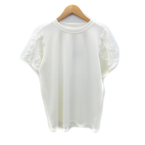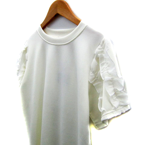 ミュー Myu カットソー 半袖 ラウンドネック 無地 フリル L 白 ホワイト /SY40 レディース