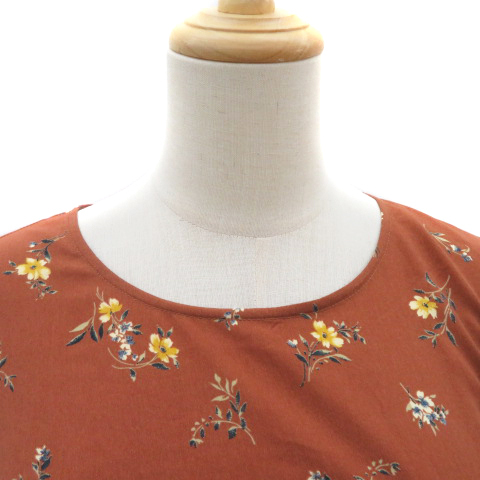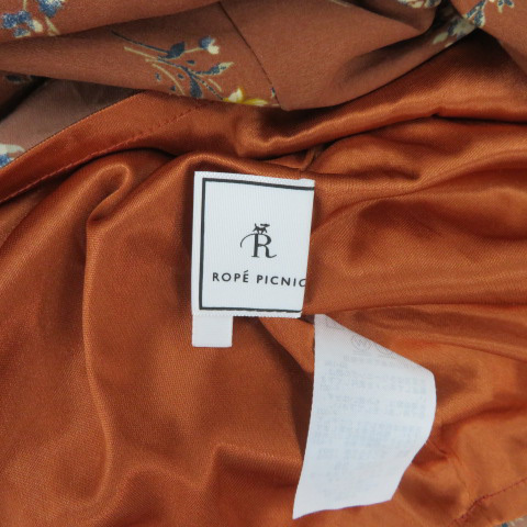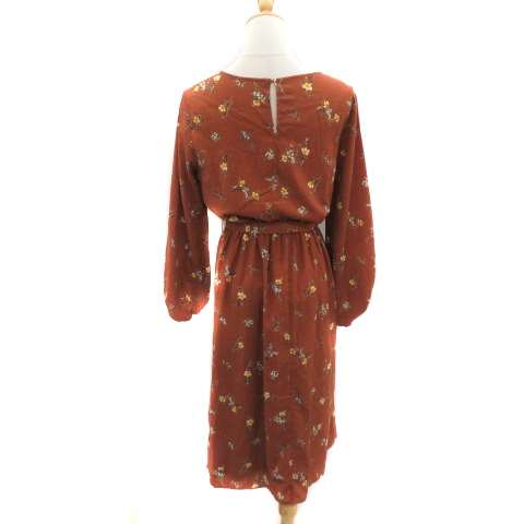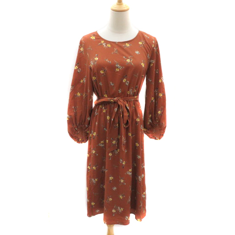 ロペピクニック ROPE Picnic ワンピース ミモレ丈 長袖 ウエストリボン 花柄 38 M マルチカラー ブラウン /YK11 レディース