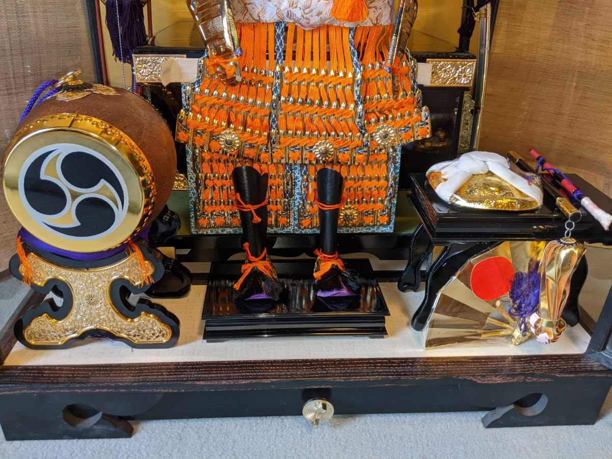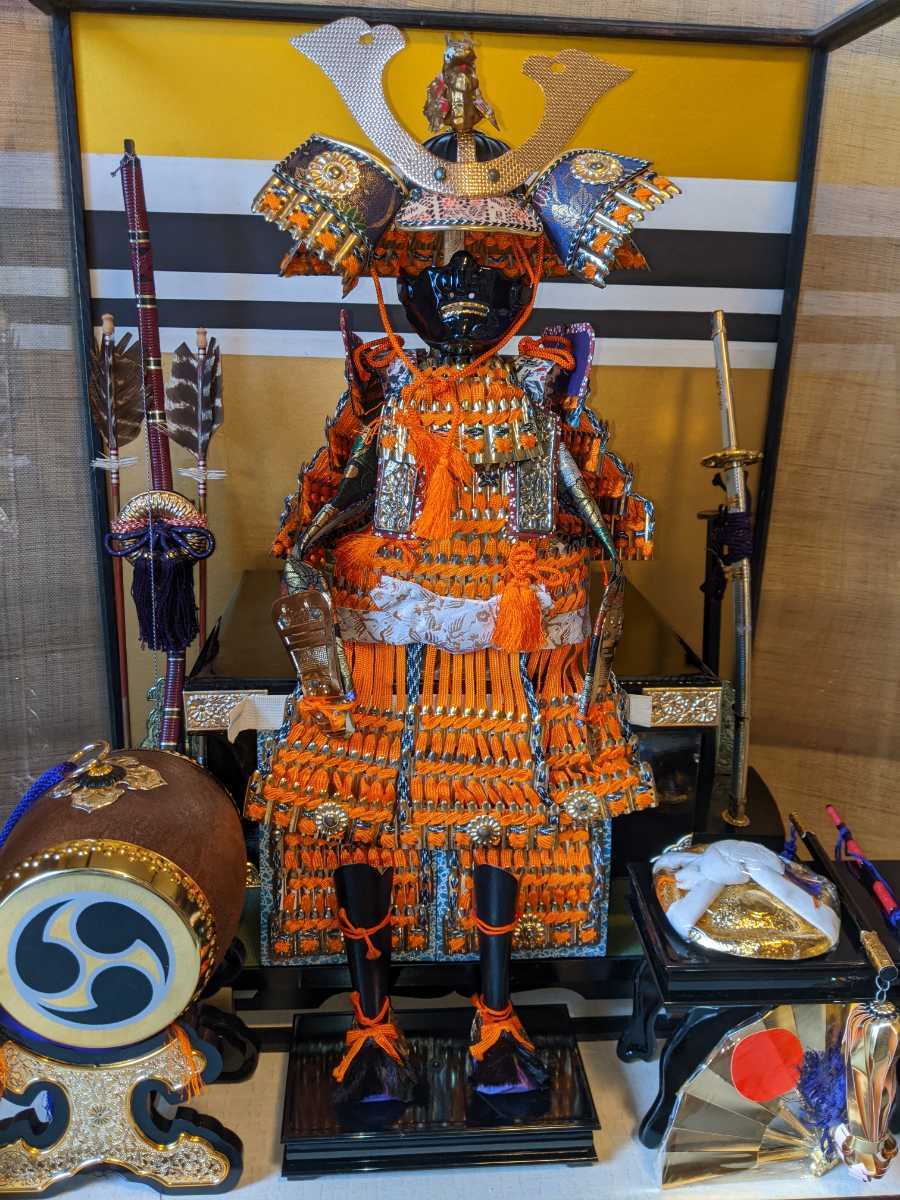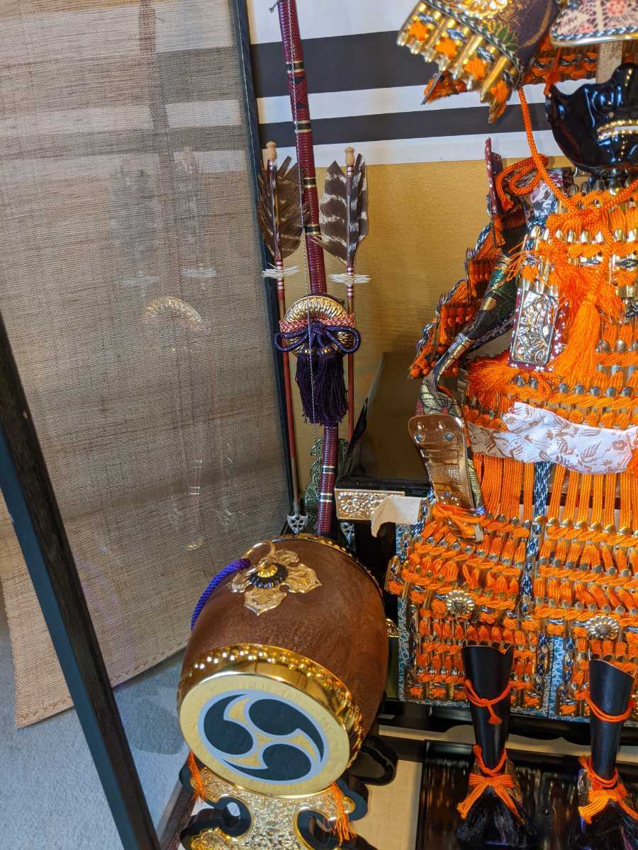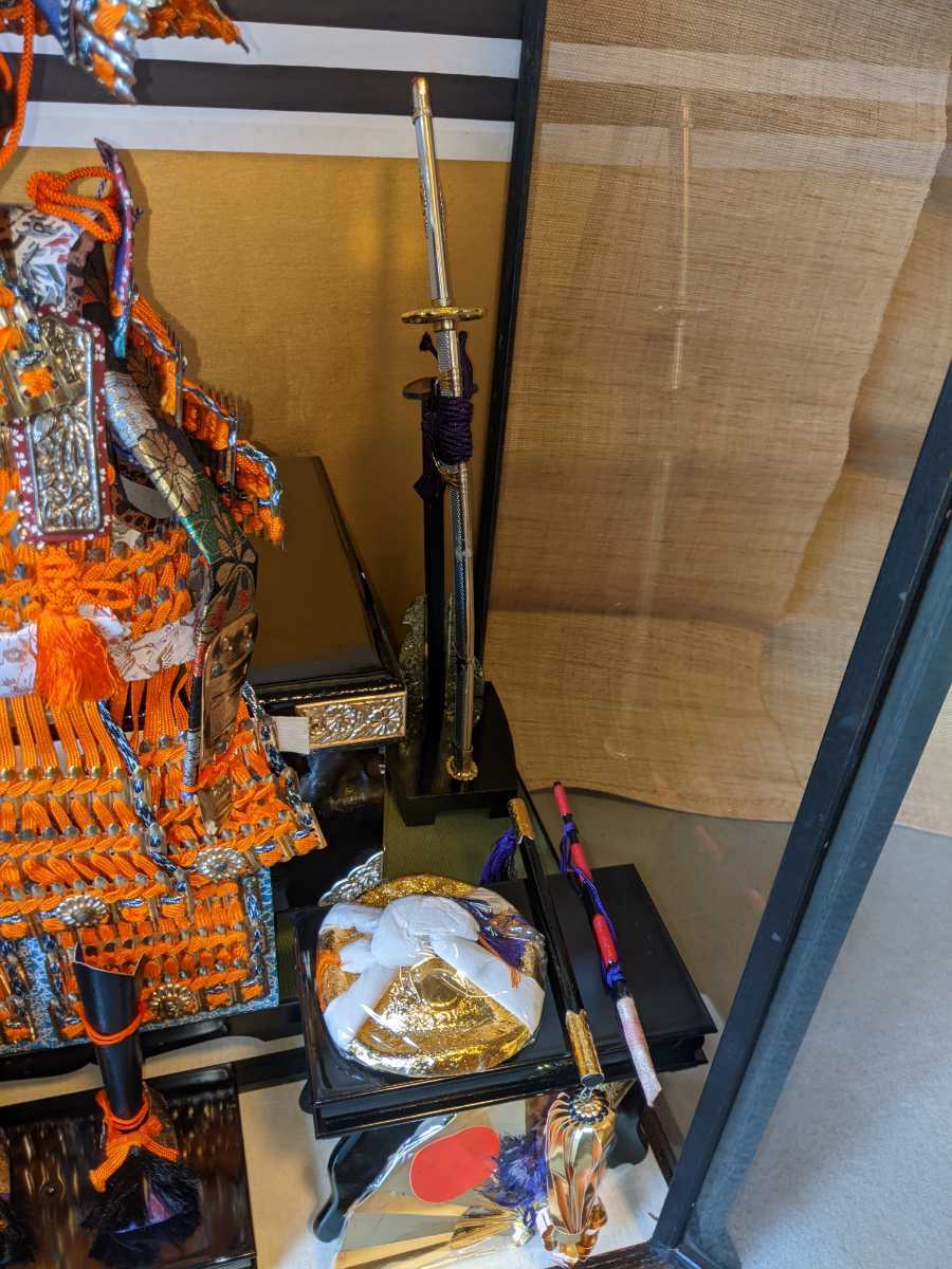 ガラスケース正面下のつまみを回すと「♪屋根より高い鯉のぼり…♪」のオルゴールが流れます。