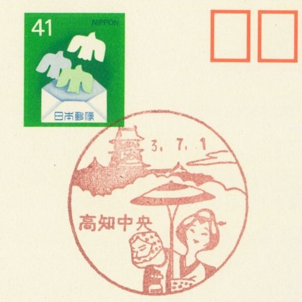 風景印☆バラエティ☆高知・高知中央・H3.7.1・局名中央