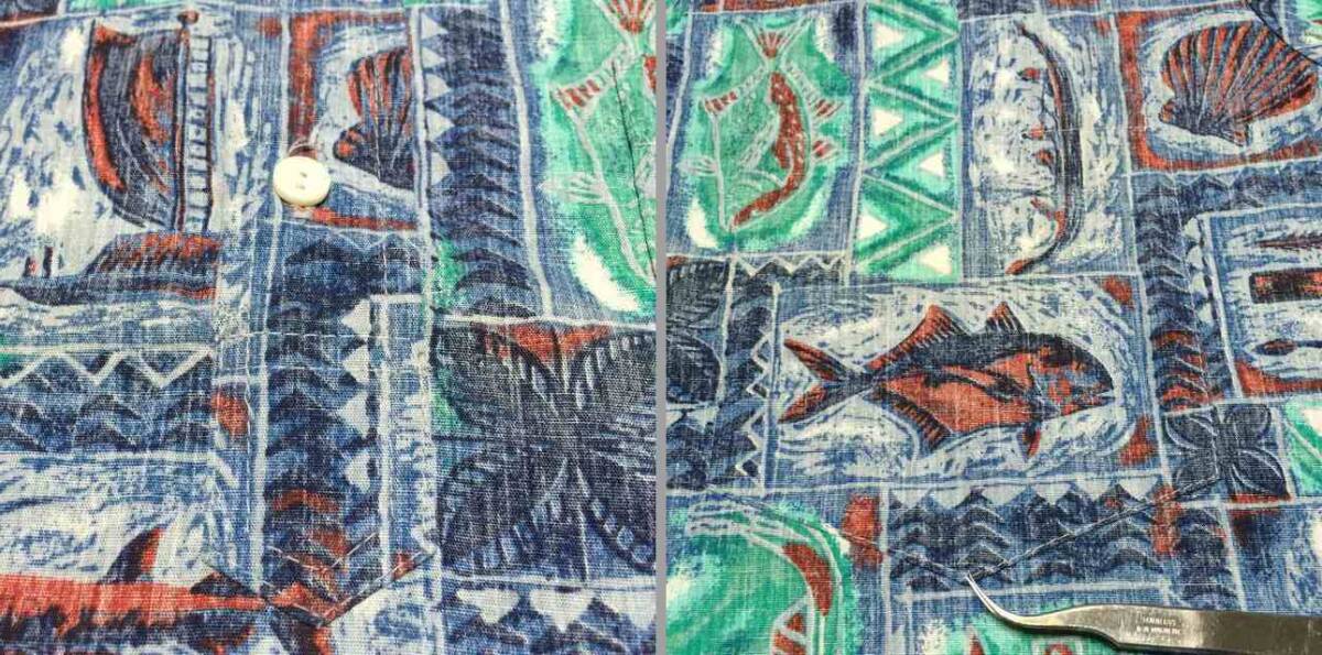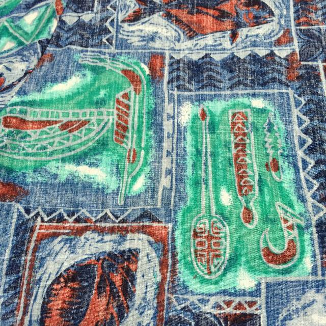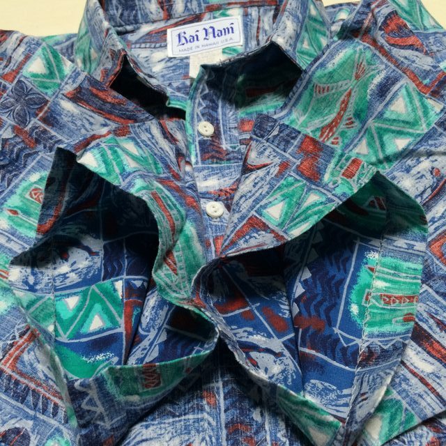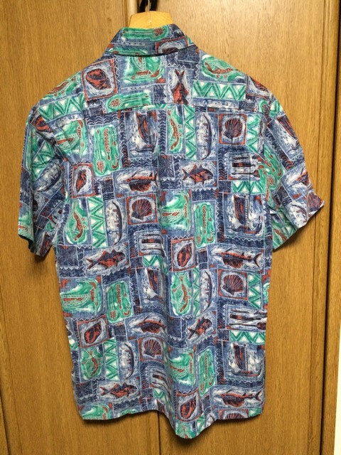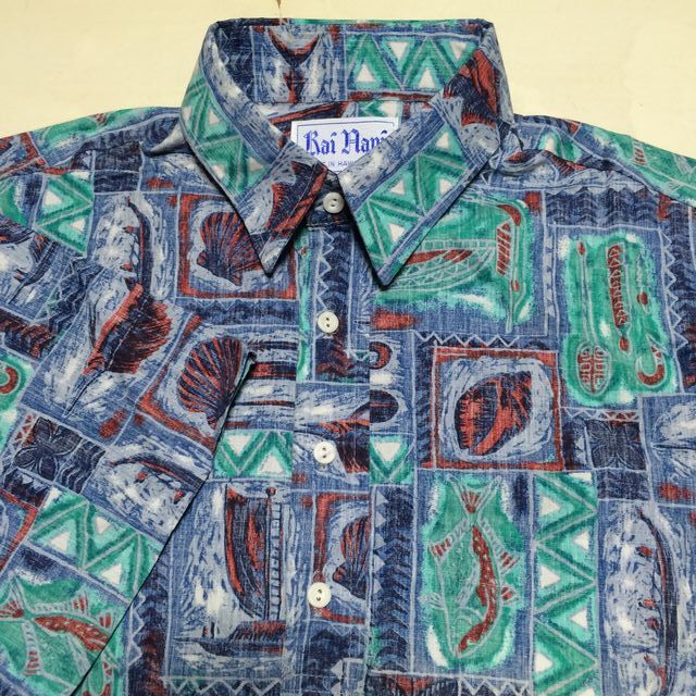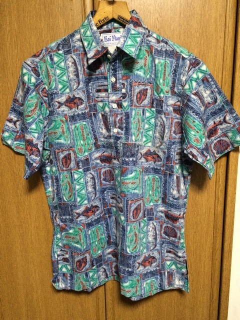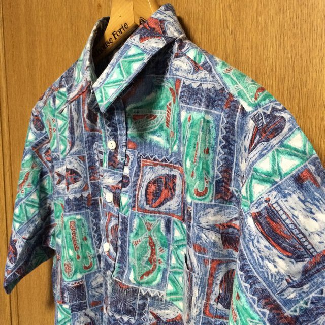 | 商品説明・状態 | 1.アメリカ製 70S RAI NANI ビンテージCPアロハシャツで、 プルオーバータイプです。 2.グリーン色をベースに海柄がAll Over Patternでプリントされています。 2.スレ、ほつれ、目立つ退色はありません。サイズの合う方いかがですか。 | |
