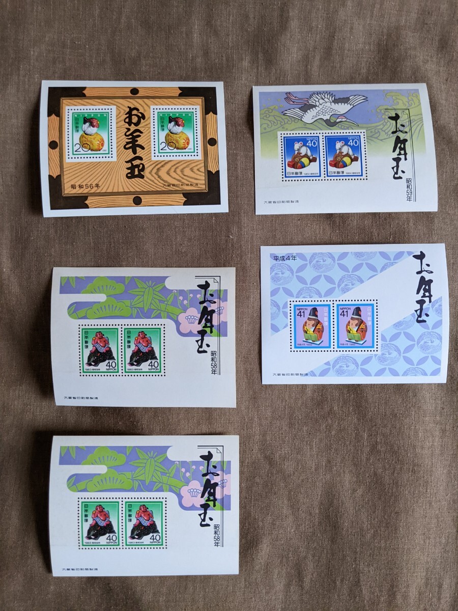 未使用、折れ無し、お年玉切手5枚、実値362円