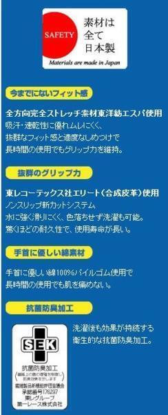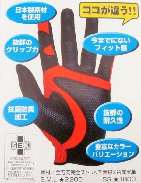 | 備考 | 新品商品です。 【定価】・・・¥2,200-(税抜) 【素材】・・・全方向完全ストレッチ素材x合成皮革 【特徴】・・・グローブ革命! No.1のストレッチ! 《 日本製素材使用 》 東洋紡ストレッチ生地・東レコーテックス合成皮革 | ||