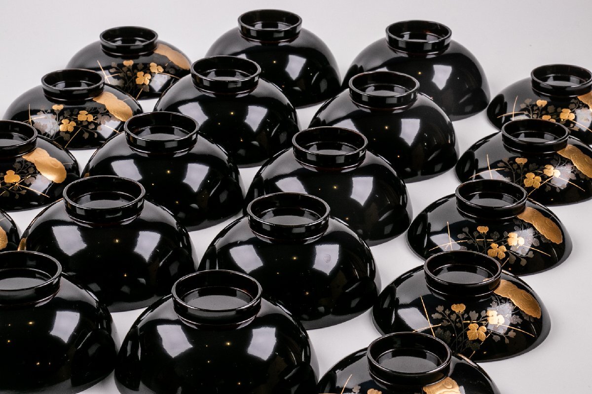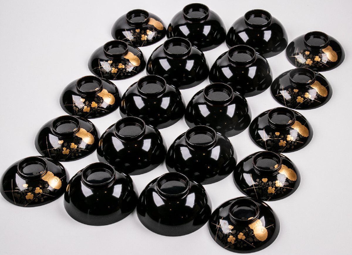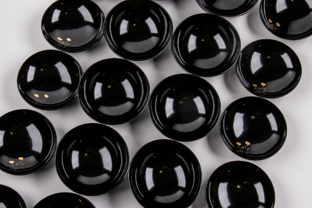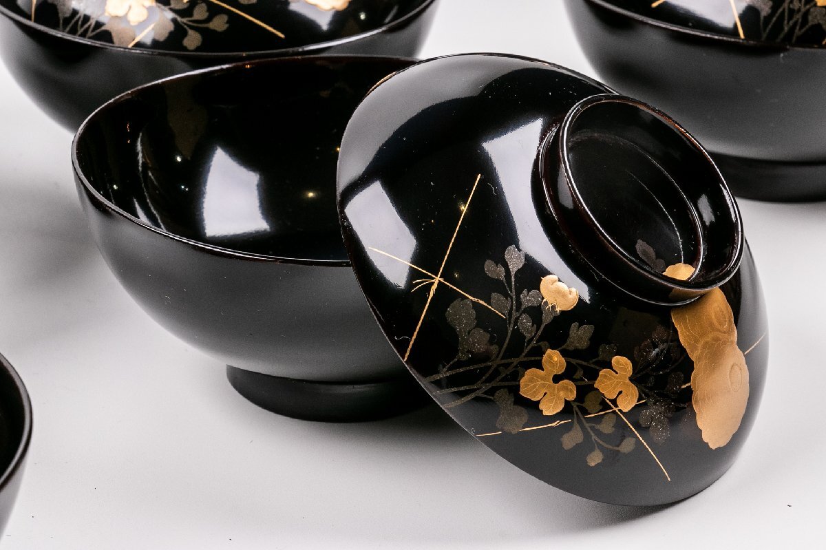 【うつわ】 真塗菊花蒔絵 吸物椀 5客 E1416 バラ売り可能です 古美術 骨董 古玩 和食器 漆芸 日本料理 懐石 料亭