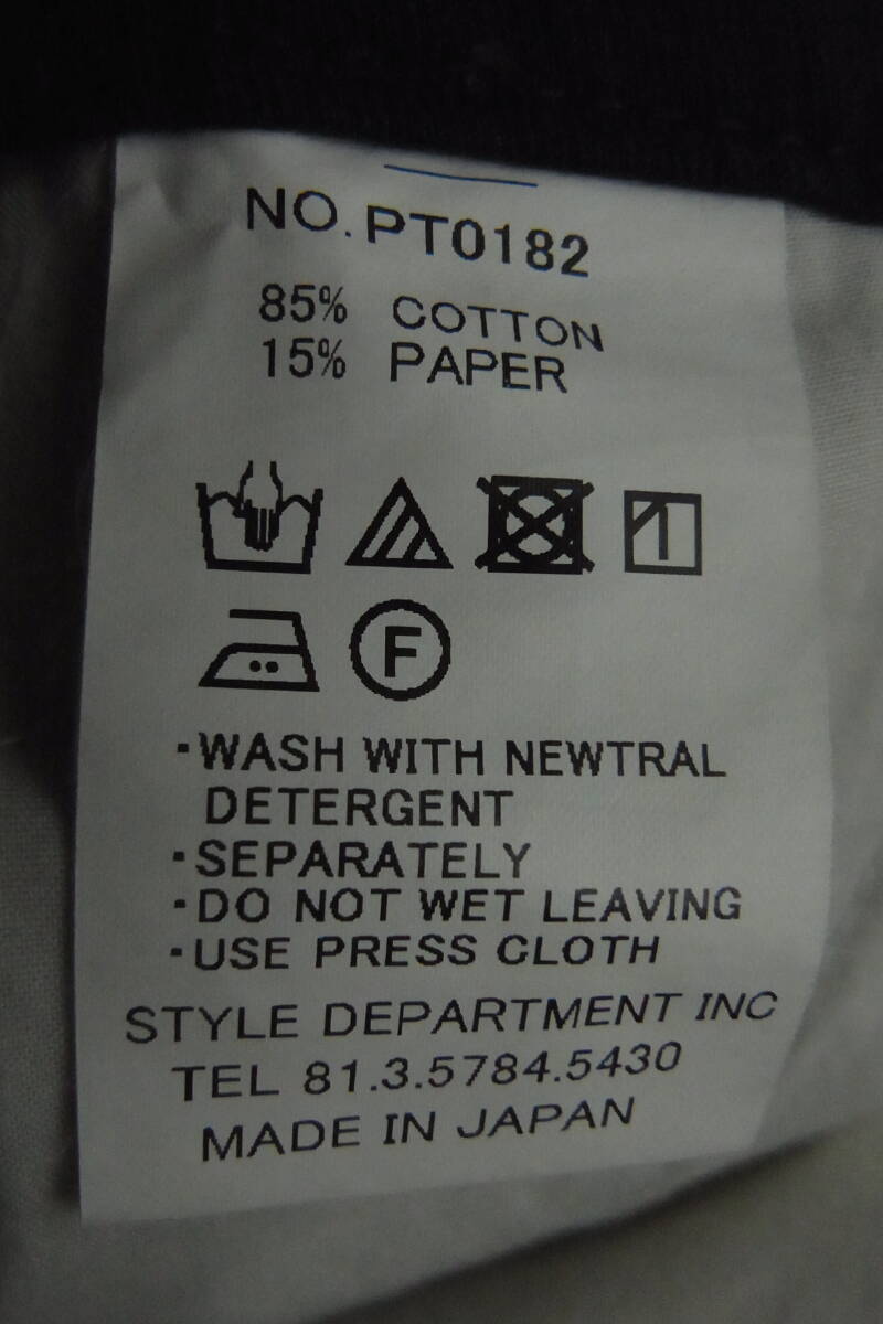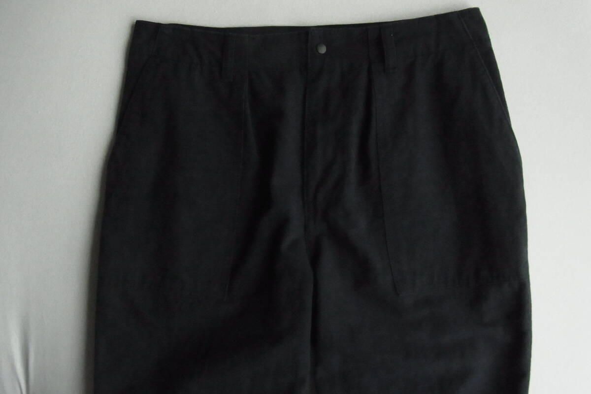 スティルバイハンドの綿に紙繊維を混紡した素材で、テーパードシルエットの変形ベイカーパンツになります。USEDで着用感は御座いますが、特に目立ったダメージ等は御座いません。