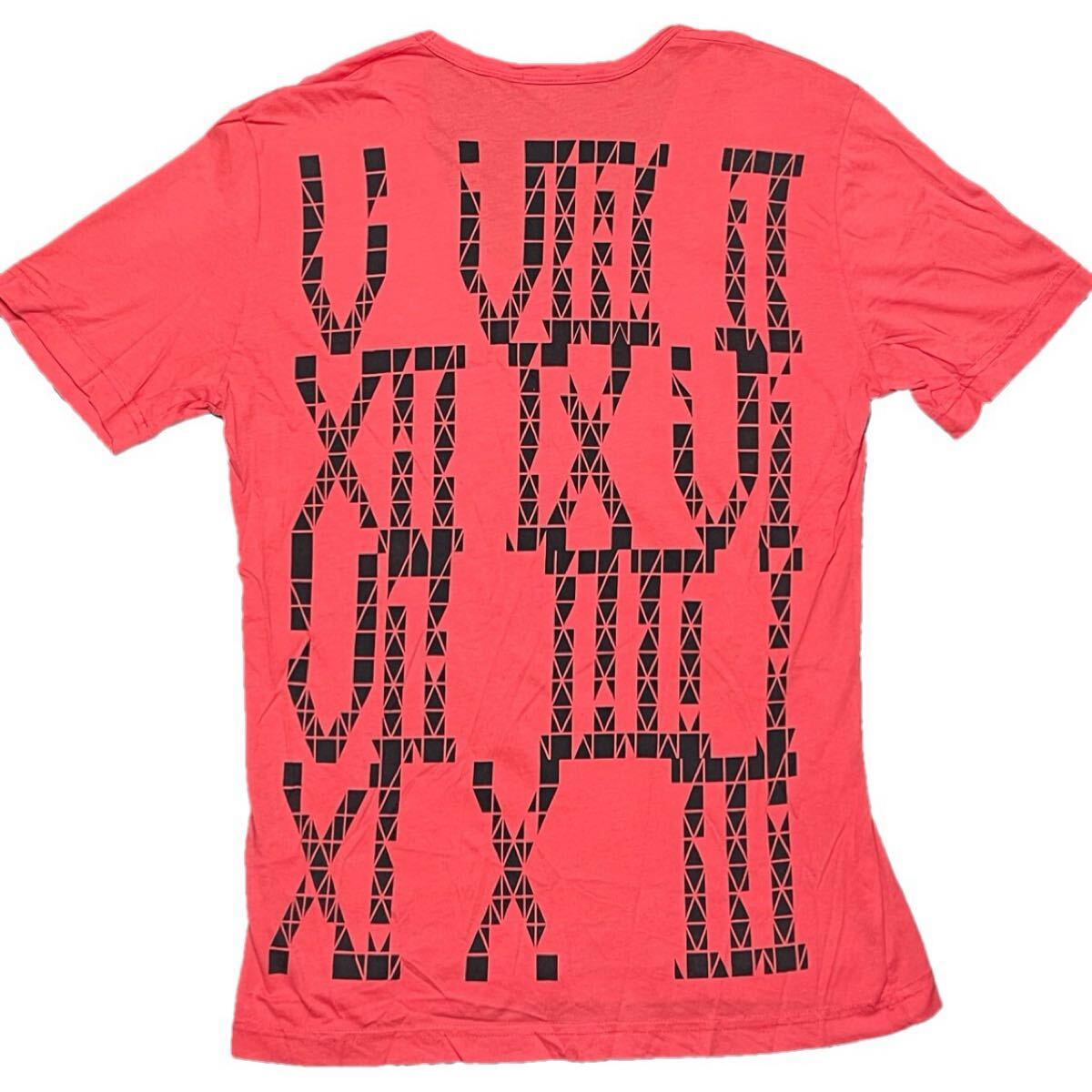 VネックとUネックの融合のような襟型のTシャツで、背面全体に入っているバックプリントロゴがインパクトのあるおすすめの一品です。