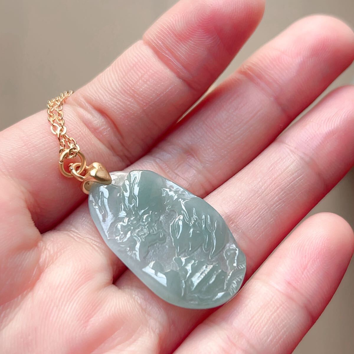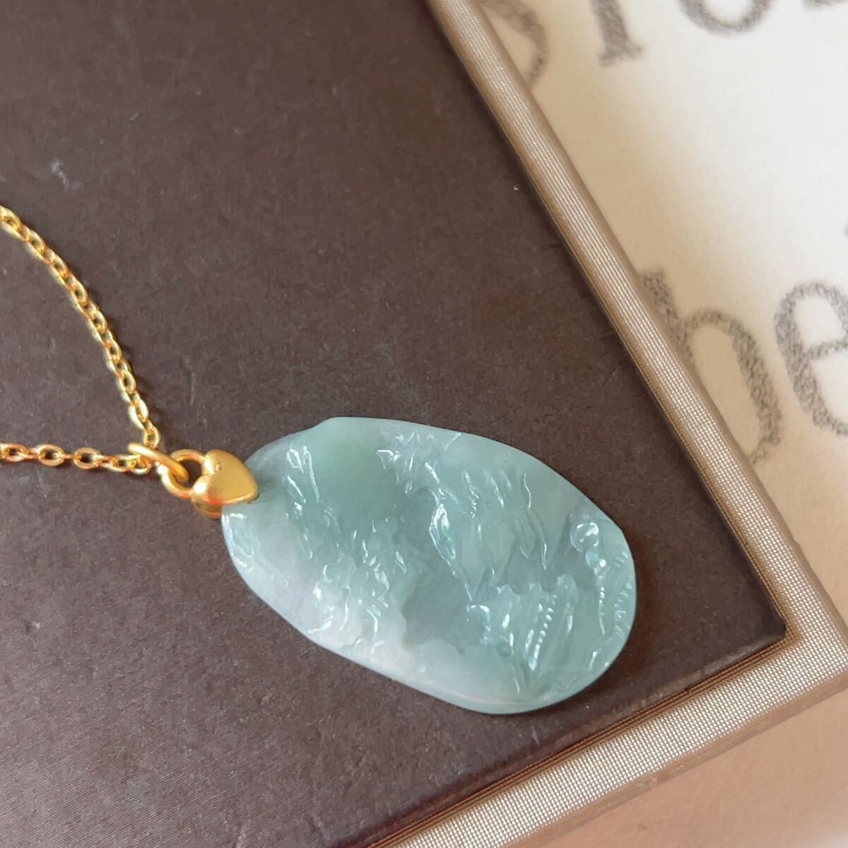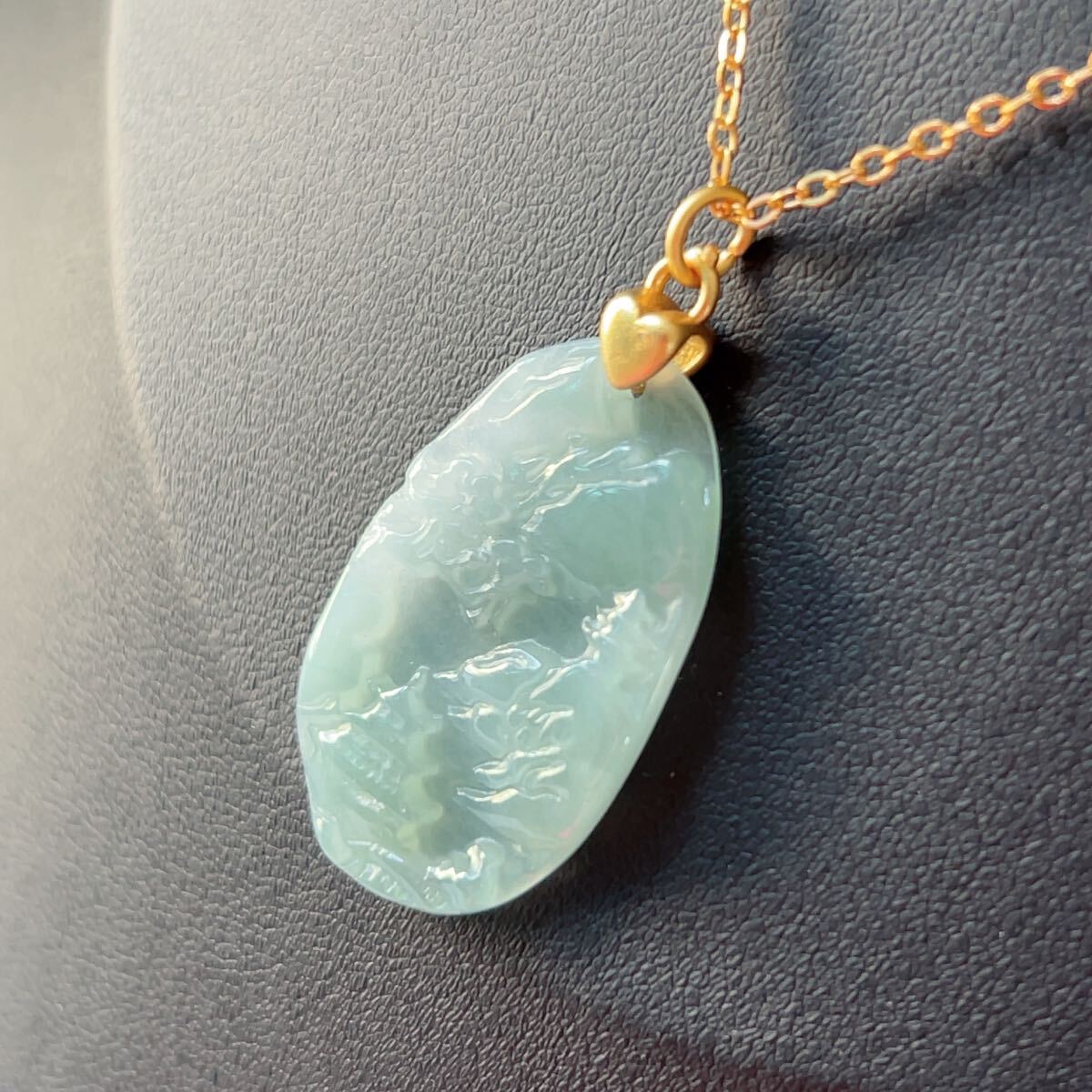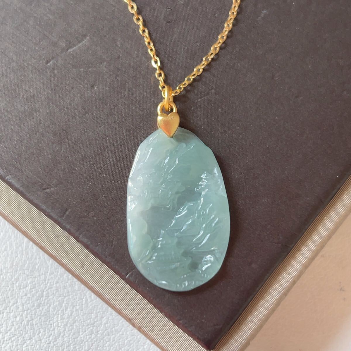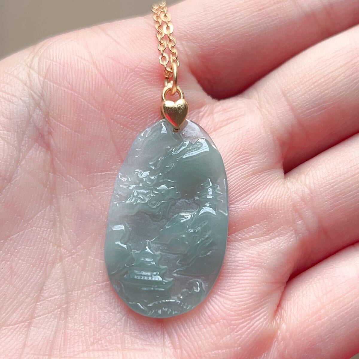 ◇ジェイド(本翡翠)◇ヒスイ◇ネックレス◇ペンダント◇山水風景◇彫刻◇天然石◇パワーストーン◇巾着袋付き◇プレゼントに 036P532