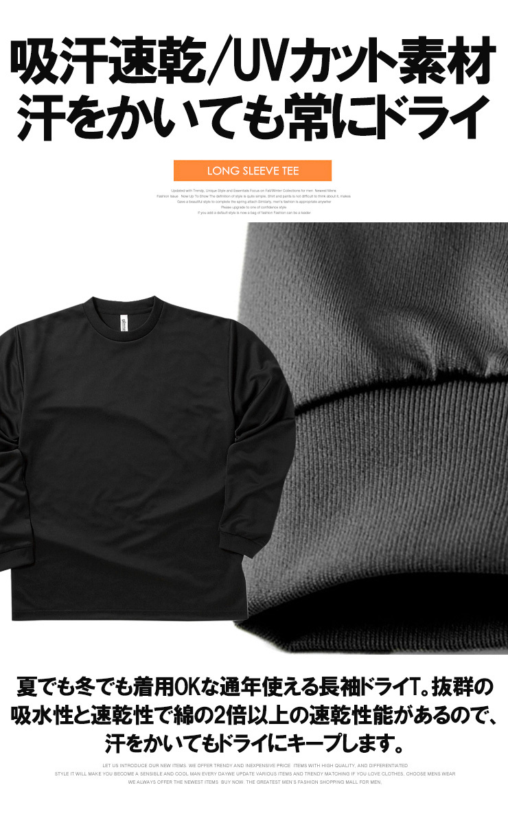 | 商品説明 | 夏でも冬でも着用OKな通年使える長袖ドライTシャツ。 |