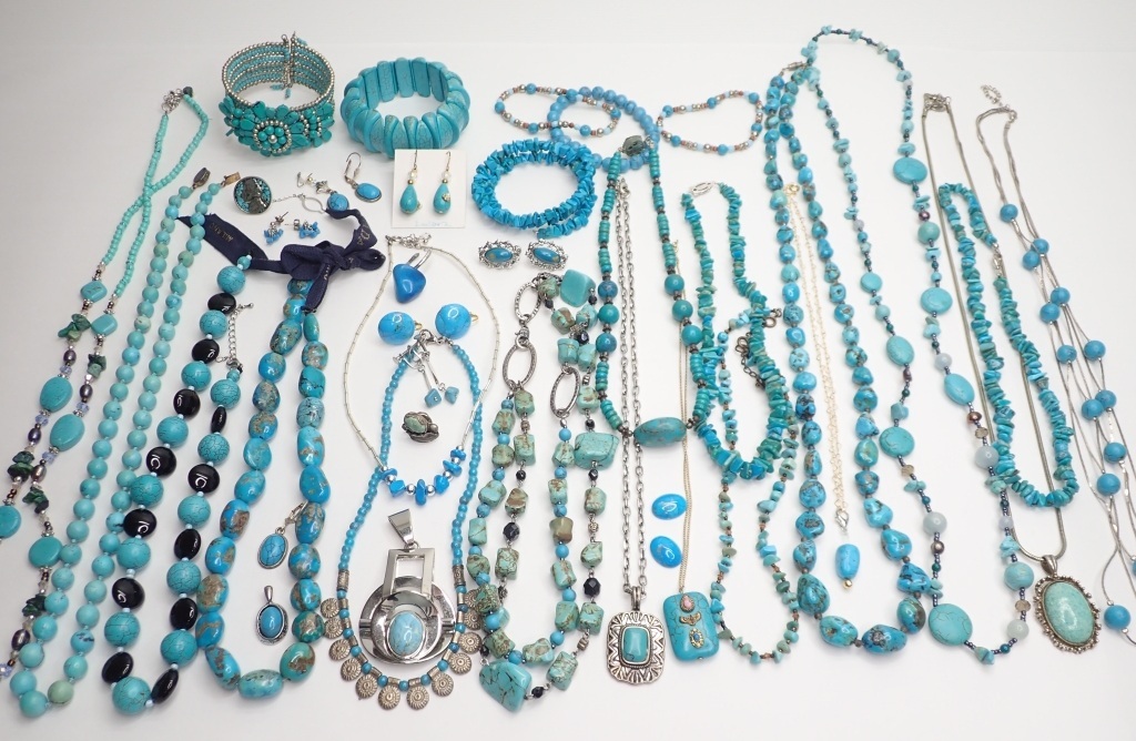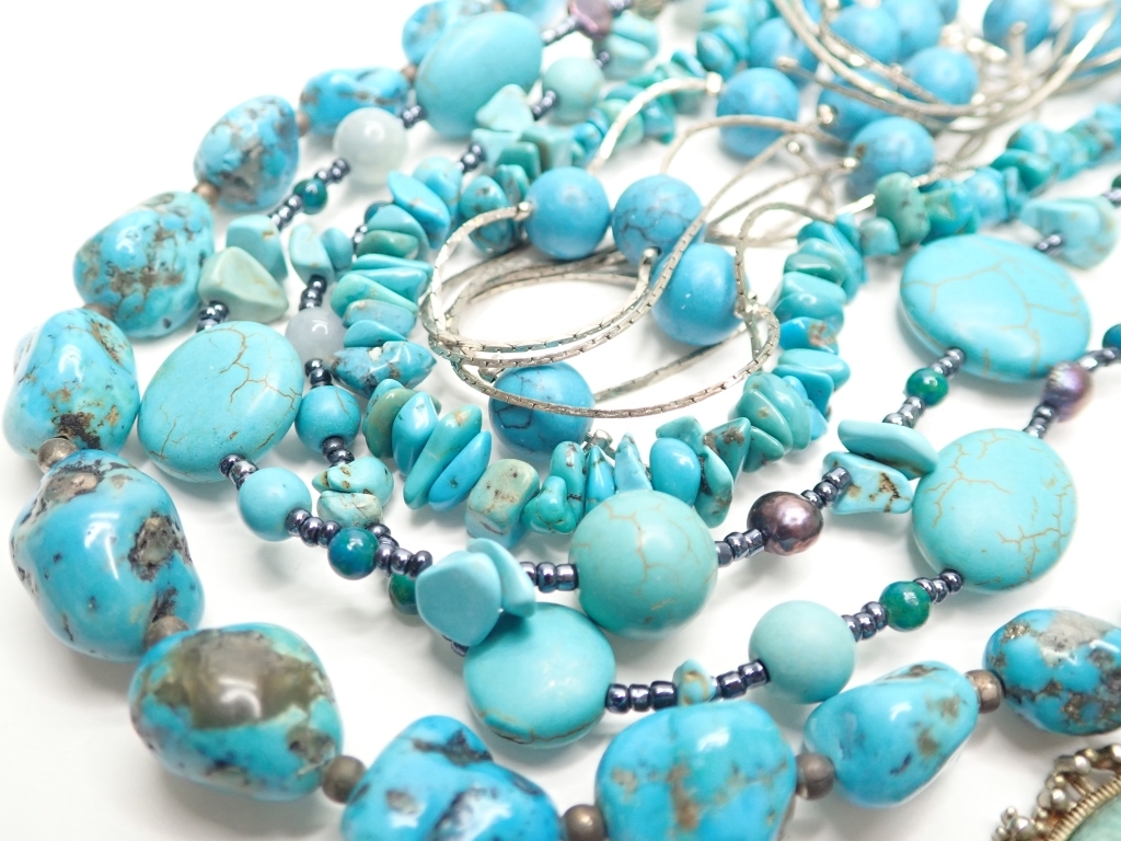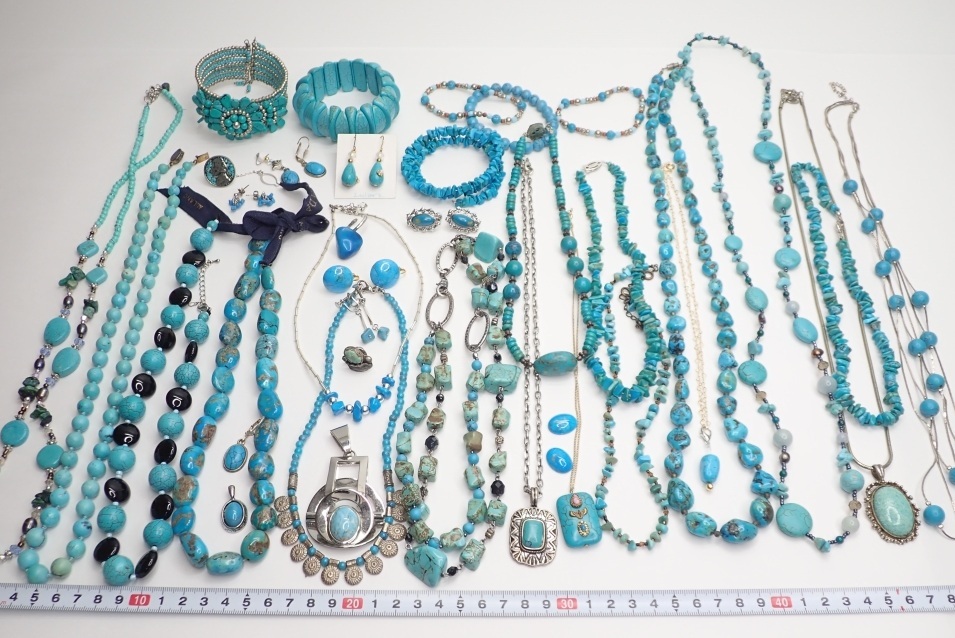 M953 天然石 ターコイズ トルコ石 青石 30点以上セット ネックレス 930g 大量/まとめて/各種色々/アクセサリー