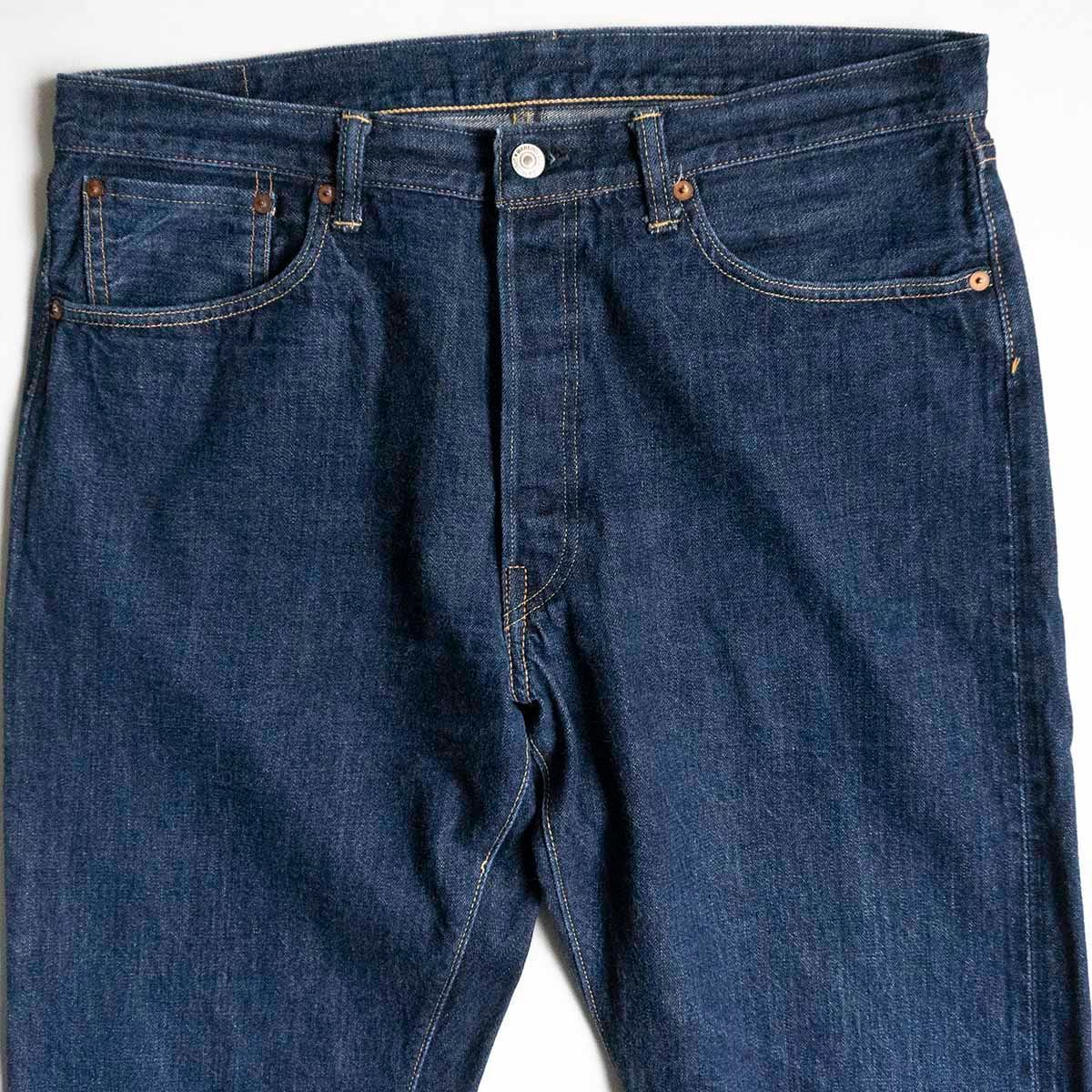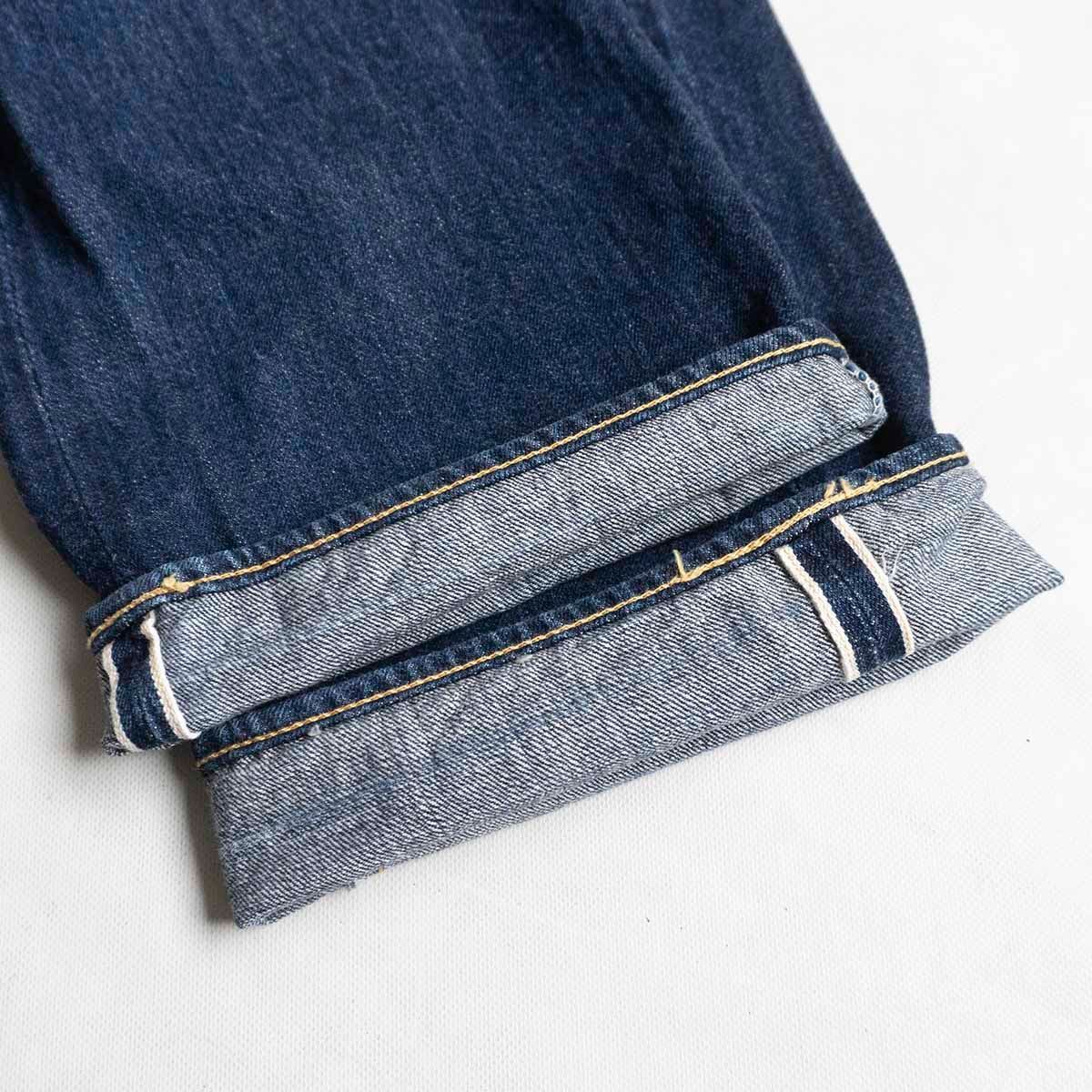 ウエアハウスのフラッグシップモデル。1930年代のデニムバナーを解体・研究して作り上げたデニムを採用しています。縫製においてもブランドテーマである「ヴィンテージの忠実なる再現」を徹底的に目指しました。腰まわりにややゆとりがあり、裾にかけて細くなる理想的なシルエットです。濃紺でこれからの色落ちを楽しむことができます。良いものをお探しの方は是非。