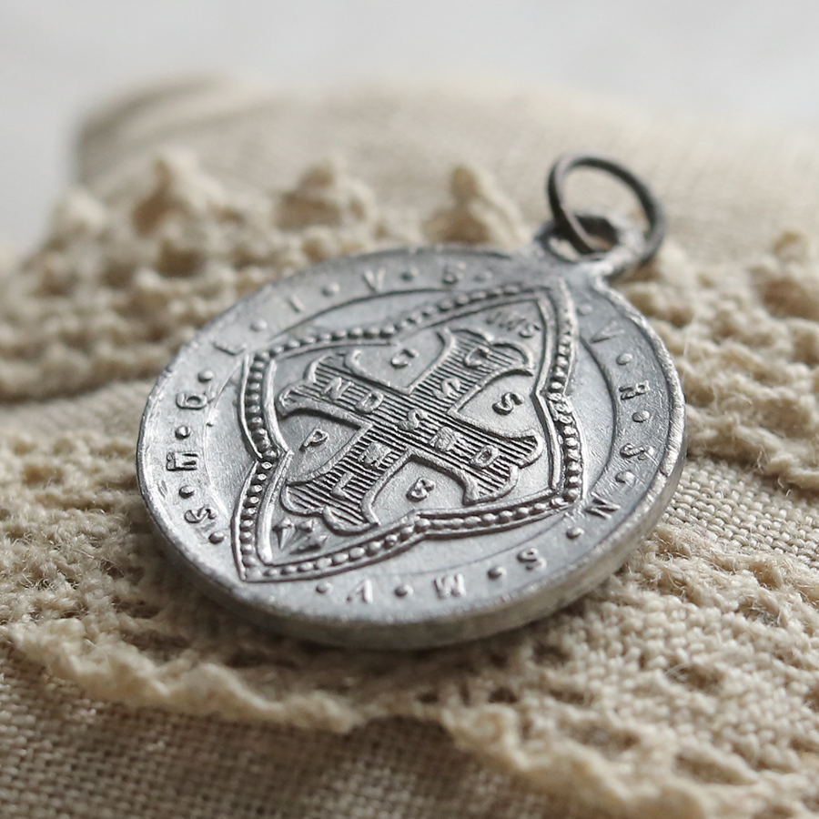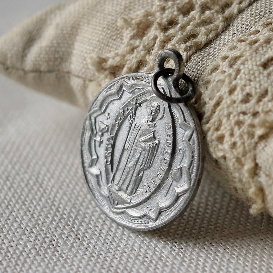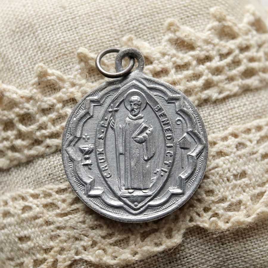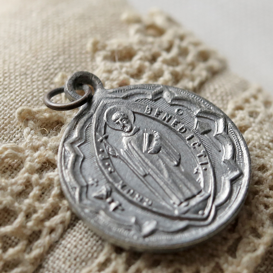 フランス アンティーク【聖ベネディクト】メダイ イタリア ローマ/チャーム メダル ロザリオ キリスト マリア 教会/3-B