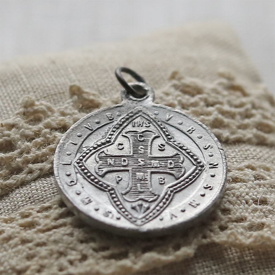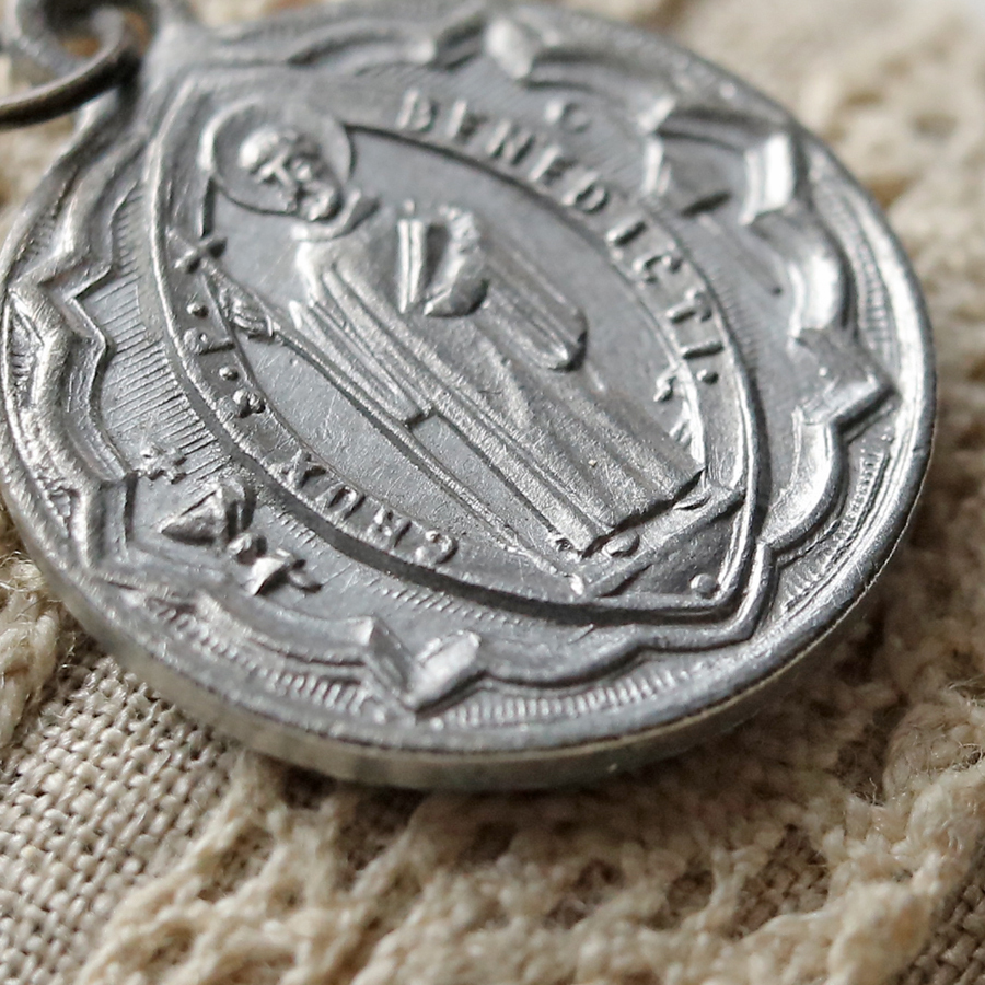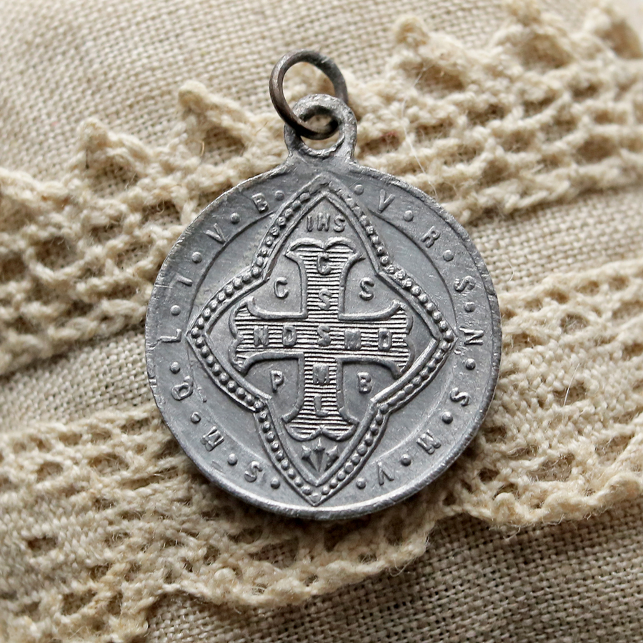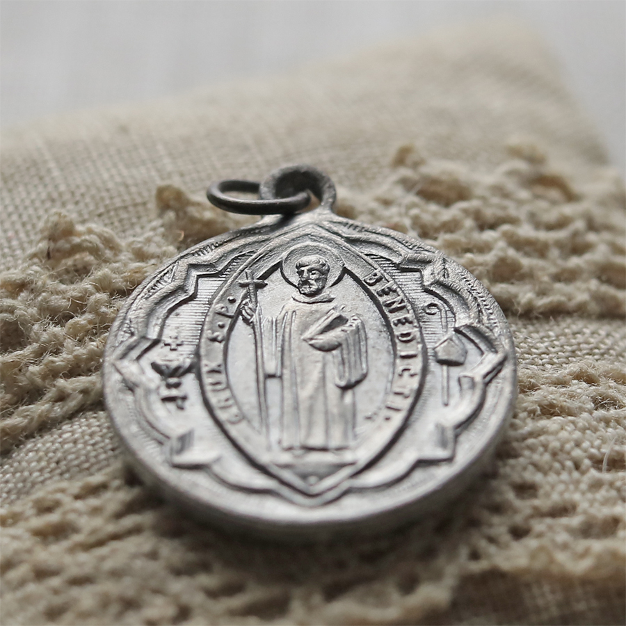 フランス アンティーク【聖ベネディクト】メダイ イタリア ローマ/チャーム メダル ロザリオ キリスト マリア 教会/3-B