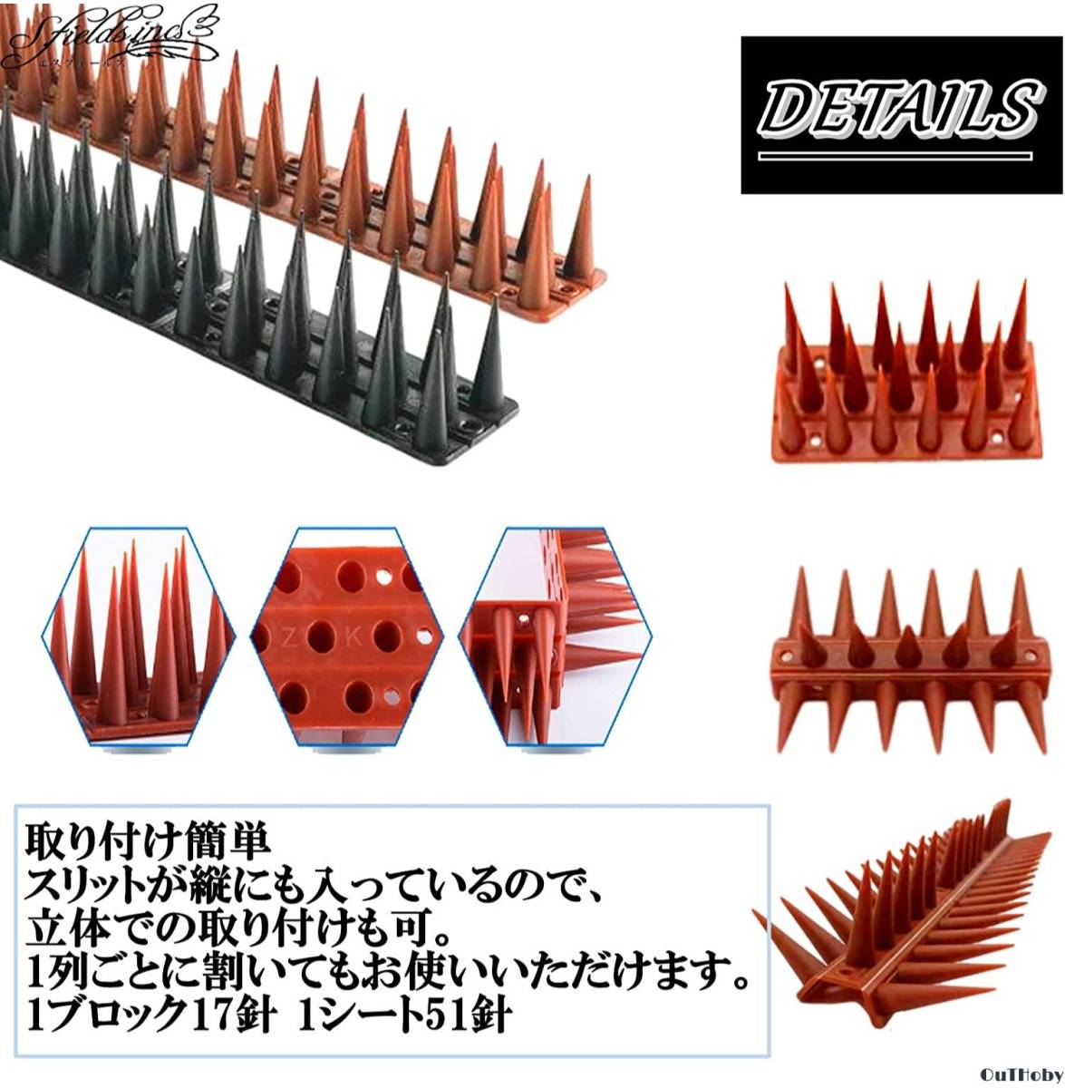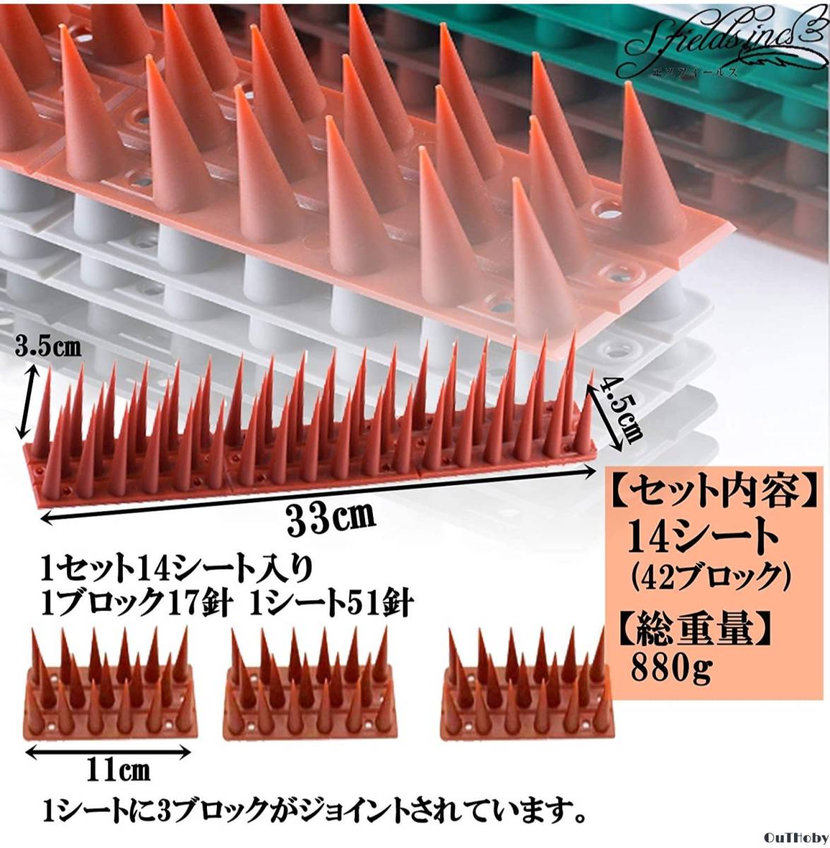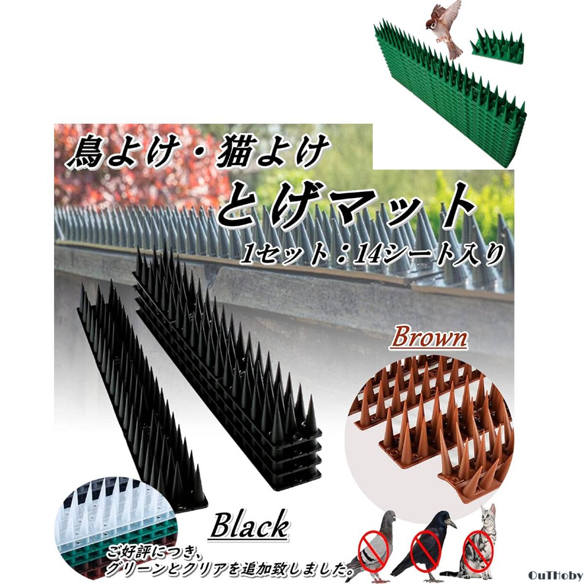 鳥よけ 鳥避け とげマット グリーンカラー 14枚セット とげ トゲ 棘 スパイク 針 鳩よけ カラスよけ 猫よけ ベランダ 屋根や塀 門 庭の柵