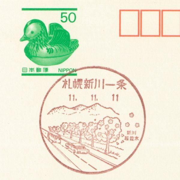 風景印☆初日☆北海道・札幌新川一条・H11.11.11