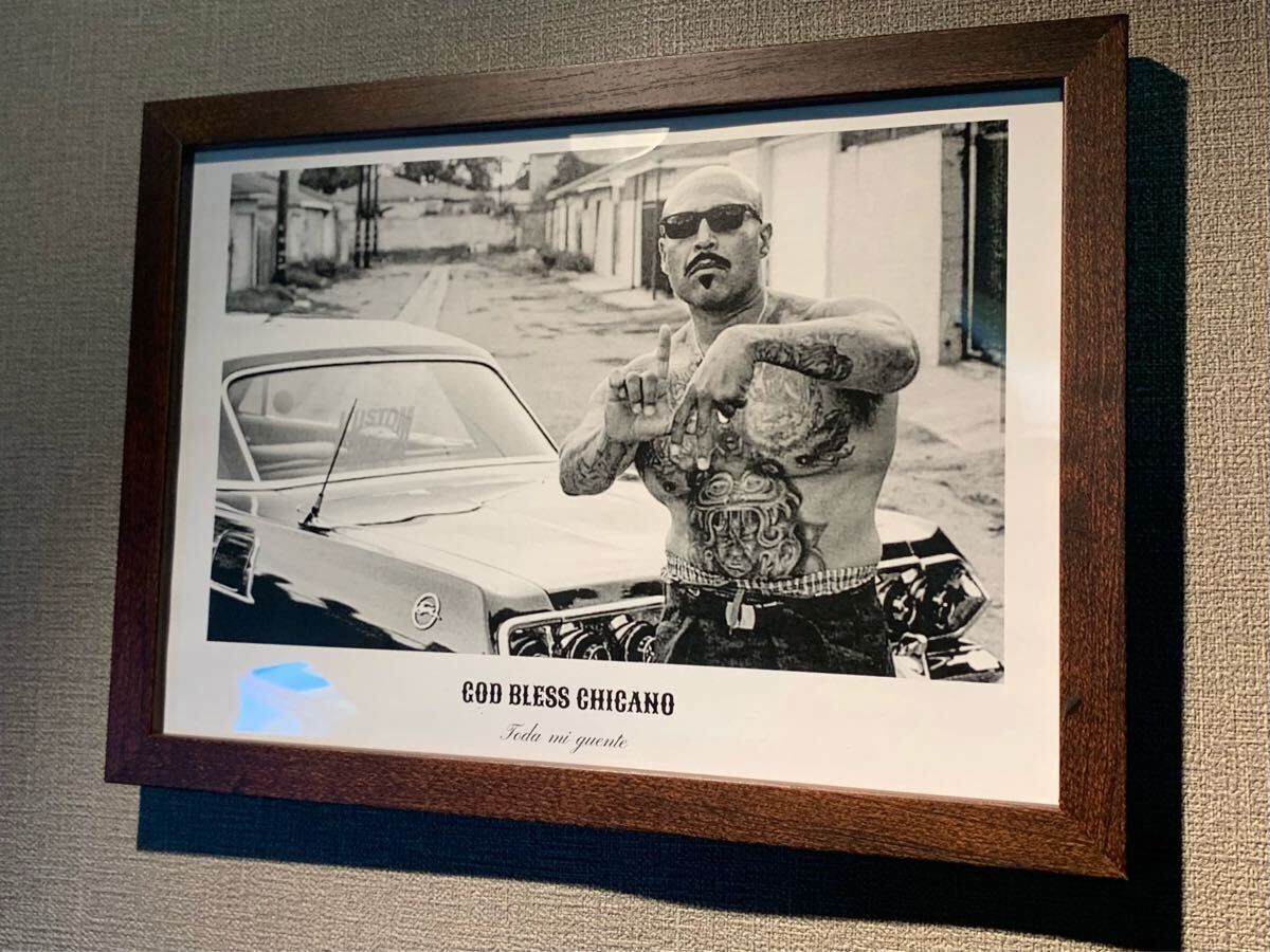 LA メキシカンギャング、チカーノのポップアートです。サイズはA4で額付きになります。フレームは画像の物ではなく細めの黒マットのものになります。当時のものではありません。画質はアップにてご確認いただきますようよろしくお願い致します。