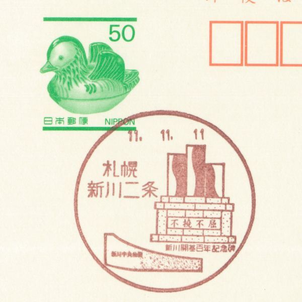 風景印☆初日☆北海道・札幌新川二条・H11.11.11