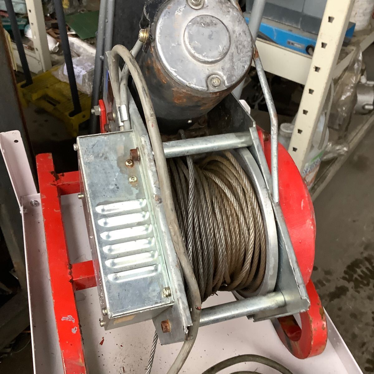 商品荷揚げ用ウインチ本体のみ【武蔵 UP115】電源100v 10A 中古品一般通電まで済みです。【注意】操作押しボタン装置無しです。現状渡し品