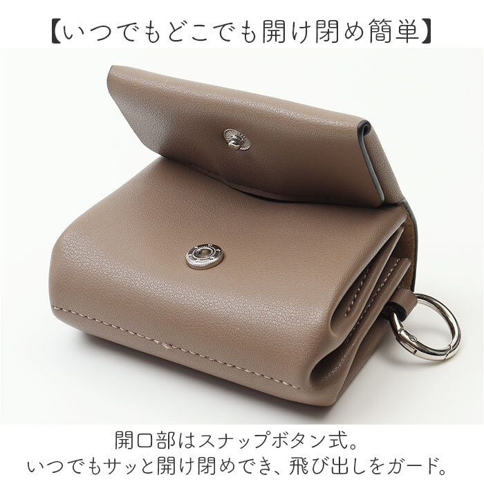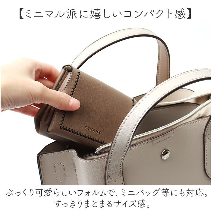 | 商品説明 | ・・【現金もカードも入る万能アイテム】 ・小さくてもしっかり入って使い勝手抜群。色んなシーンで活躍する「Rename ミニ財布」。 ・【ミニマル派に嬉しいコンパクト感】 ・ぷっくり可愛らしいフォルムで、ミニバッグ等にも対応。すっきりまとまるサイズ感。 ・【いつでもどこでも開け閉め簡単】 ・開口部はスナップボタン式。いつでもサッと開け閉めでき、飛び出しをガード。 ・【中身の確認も出し入れもスムーズ】 ・ボタンを一箇所開けるだけで全て取り出し可能。お札は折らずに、小銭もカードも収納OK。 ・【使い方自在◎便利なリング金具付き】 ・サイドのリングにチャームを取り付けたり、バッグハンドルなどに装着も! ・(※)金属パーツの色は、お財布のカラーにより異なります。 ・【落ち着きのある大人な印象を演出】 ・ソフトなフェイクレザーに、金属パーツや型押しロゴを。シンプルで飽きのこないデザイン。 ・【大切な方へのギフトにもおすすめ】 ・年代問わず使いやすく、誕生日などの贈り物にも最適。ナチュラルな巾着袋入り♪ ・【ポケット仕様】 ・内側:フリーポケット×1(お札をそのまま収納可能)、小銭入れ×1、カードポケット×1 |